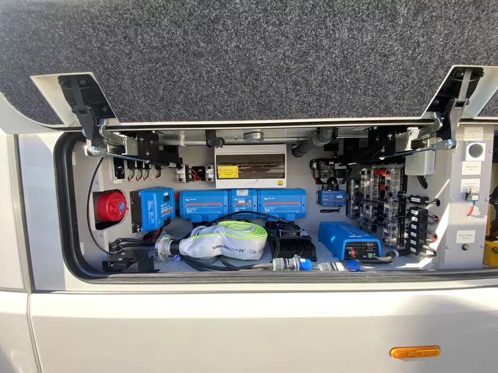 - Betrieb der optionalen 230 Volt Verbraucher über Wechselrichter. Geräte dürfen nur wechselnd,NICHT gleichzeitig genutzt werden