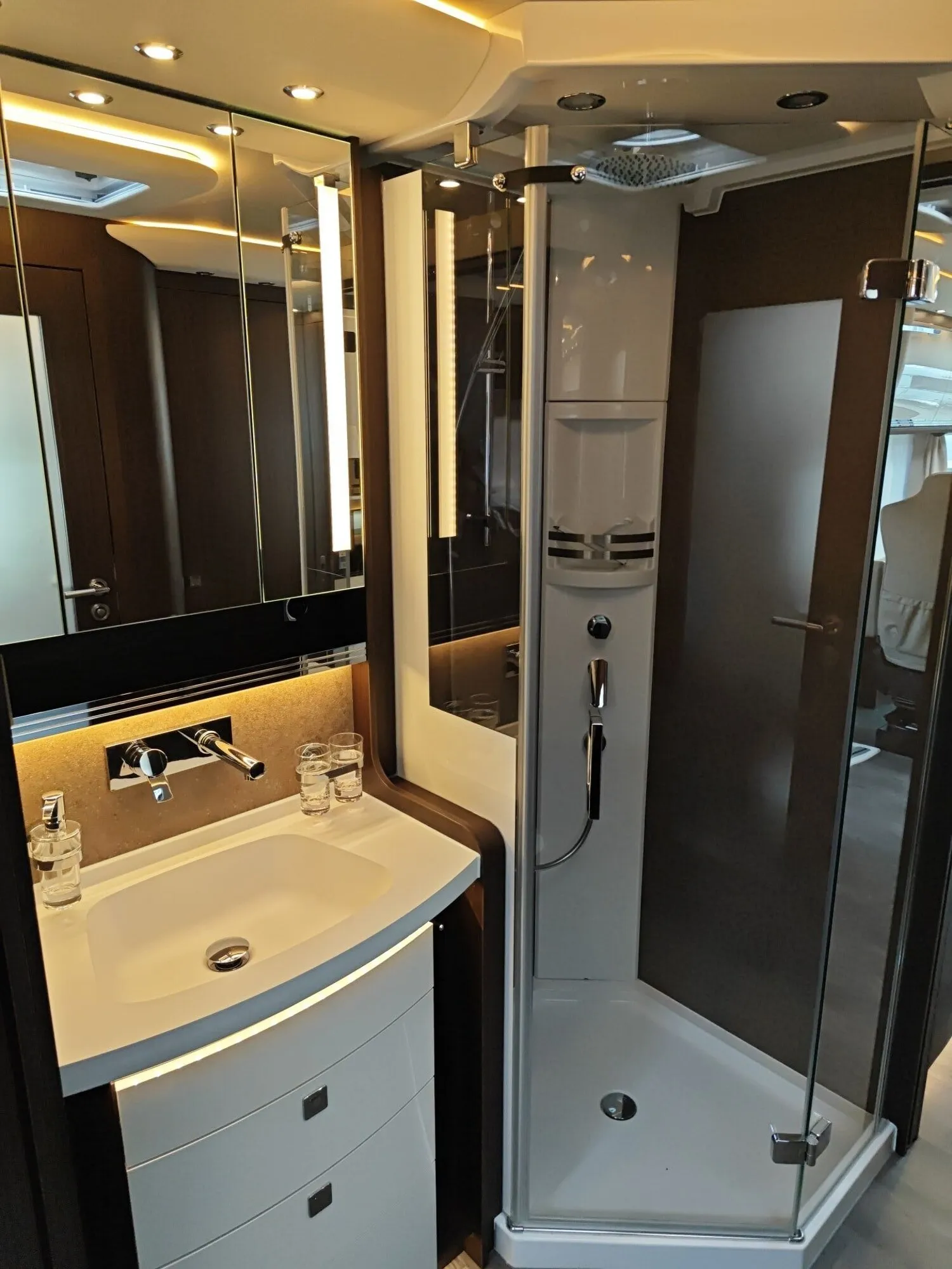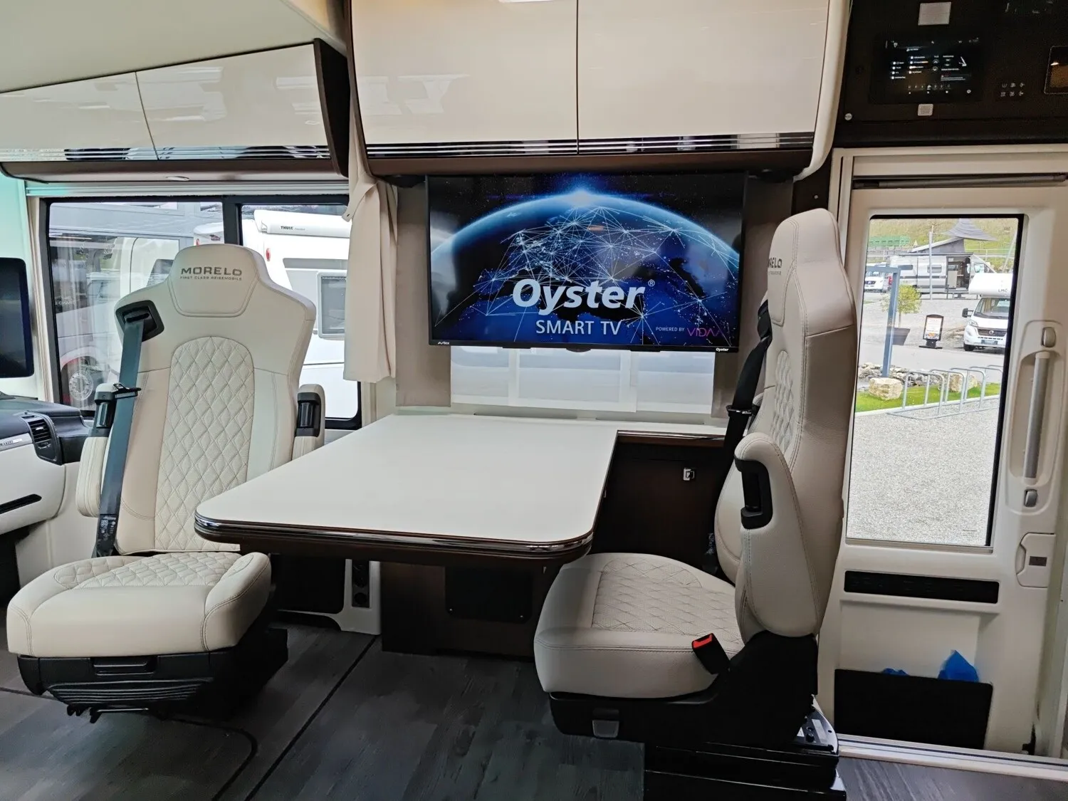 - 39" TV im Vitrinenoberschrank Beifahrerseite, 27" TV im Schlafraum