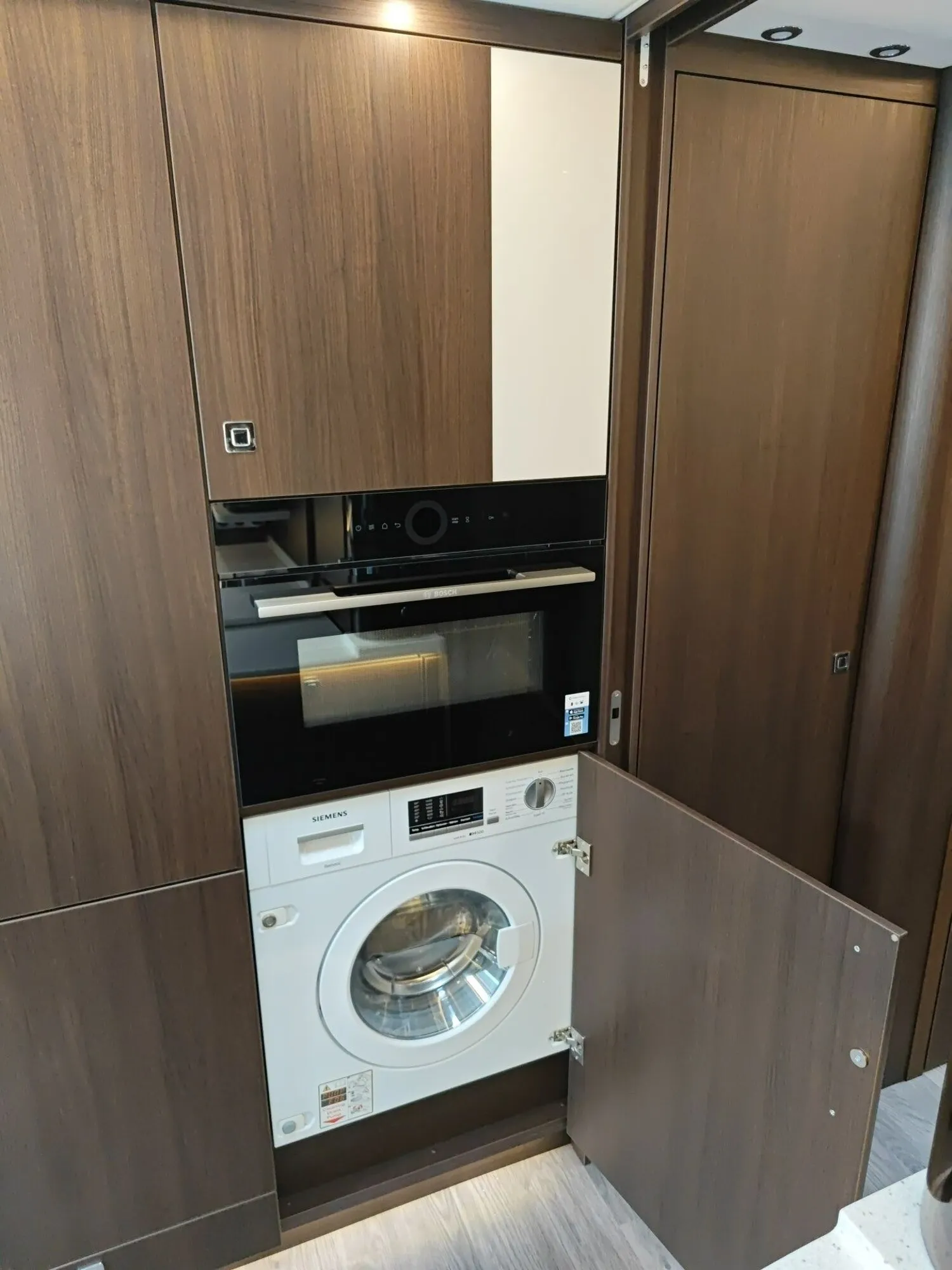 - Einbau-Waschtrockner rechts neben der Gefrier-Kühlkombination