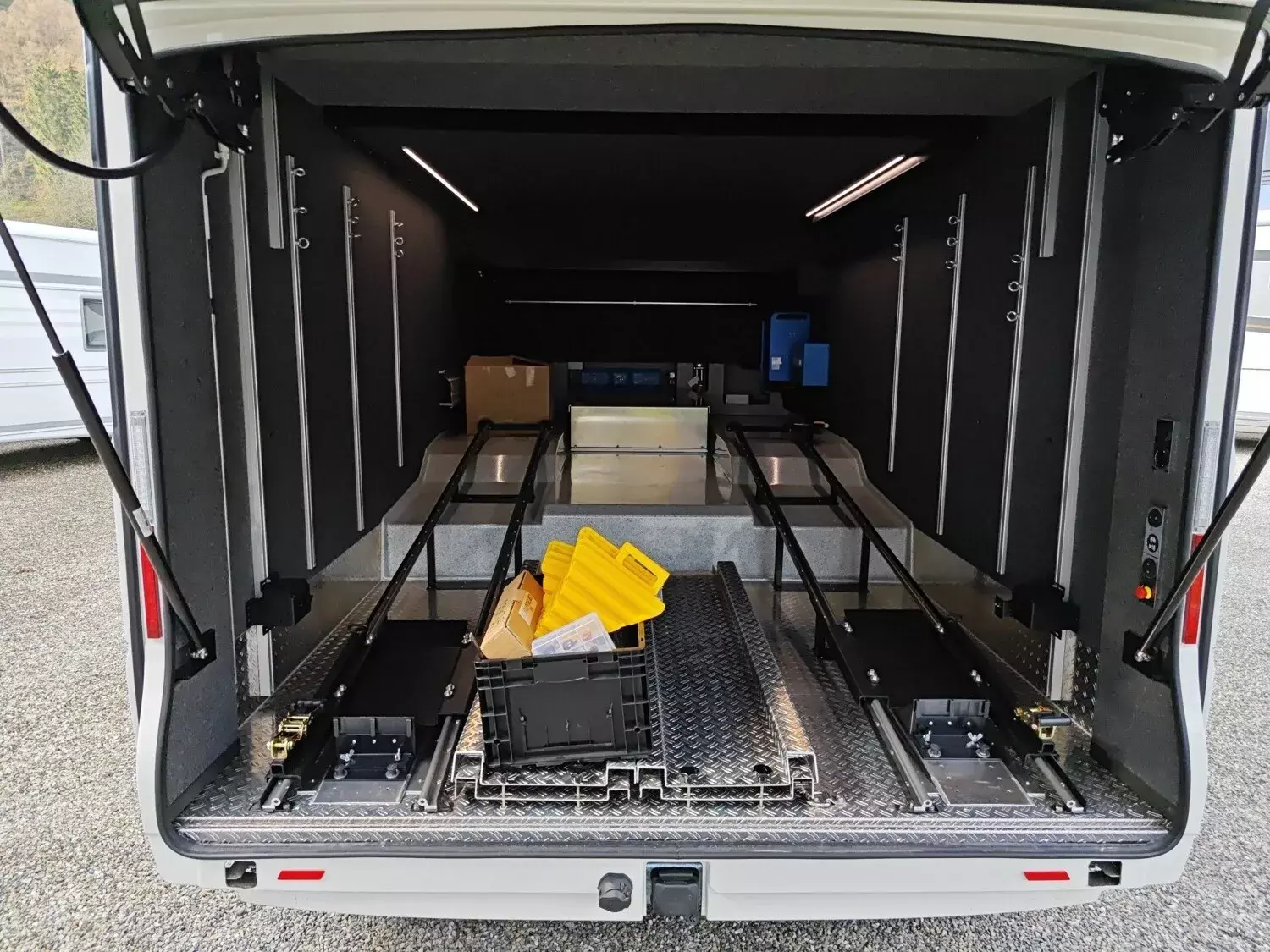 - Schienenpaket mit 3 zusätzlichen Verzurrschienen in Heckgarage