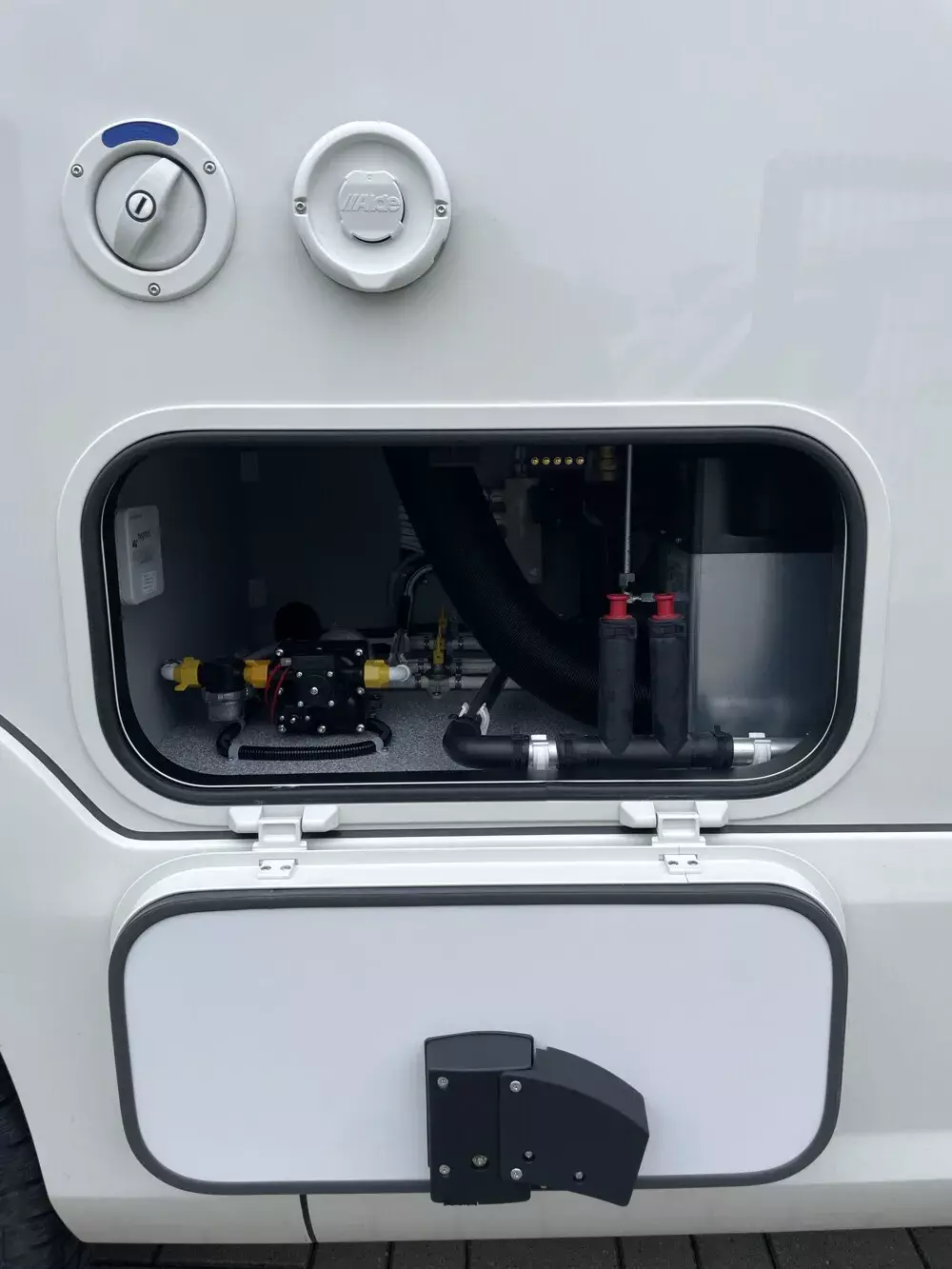 - Außendusche vor Hinterachse auf Fahrerseite