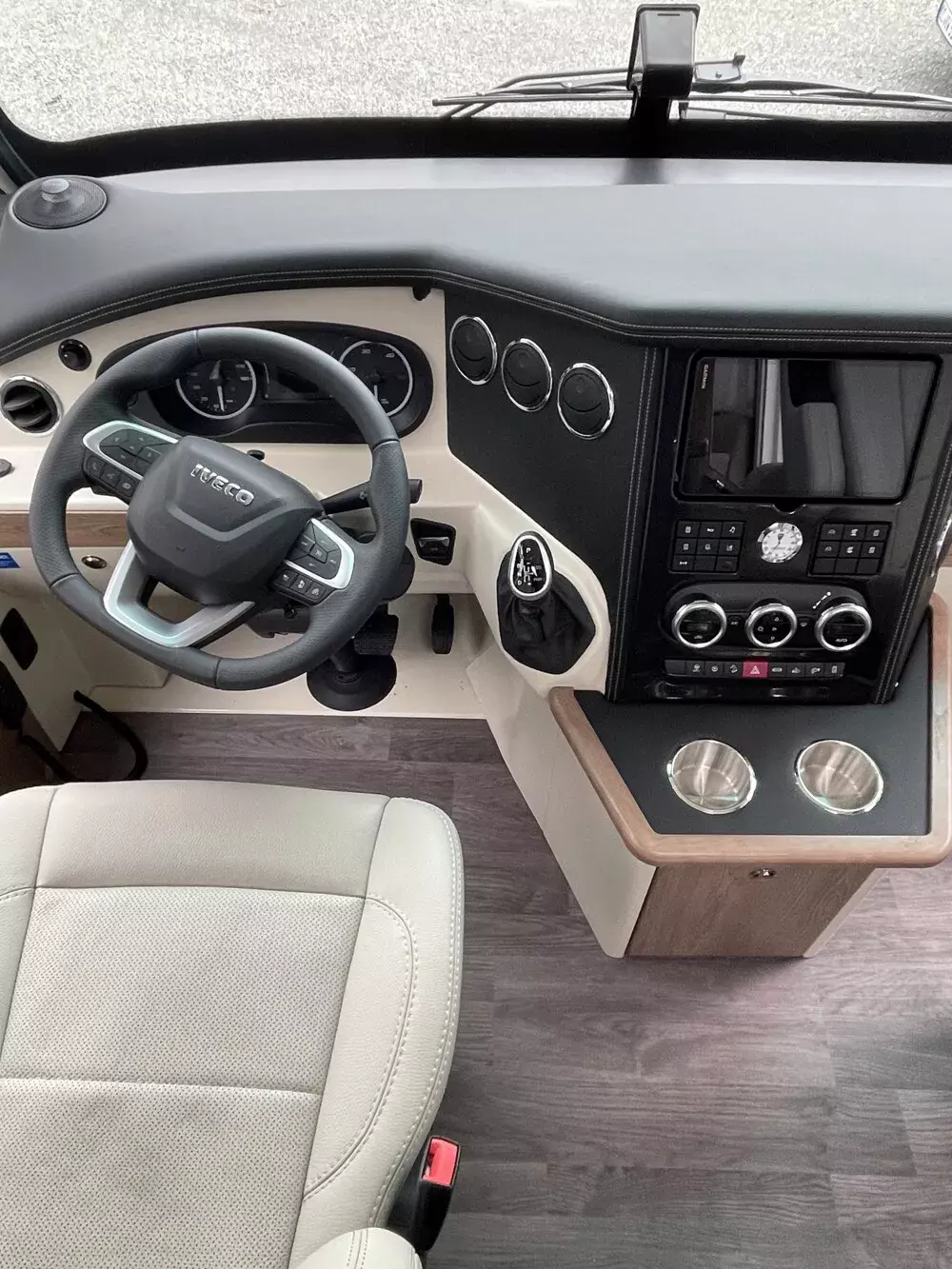- Chassis-Paket IVECO für 70 C 18 (Motorvariante C 21, 152 kW / 207 PS, Zulässiges Gesamtgewicht 7.490 kg, ZF 8-Gang Wandlergetriebe, Lederlenkrad mit Multifunktionstasten (nicht abnehmbar), Klimaanlage Fahrerhaus, Elektrische und technische Vorbereitung für Anhängerkupplung, Motorwärmetauscher, Differenzialsperre für Hinterachse, LED Rückleuchten mit Chromring)