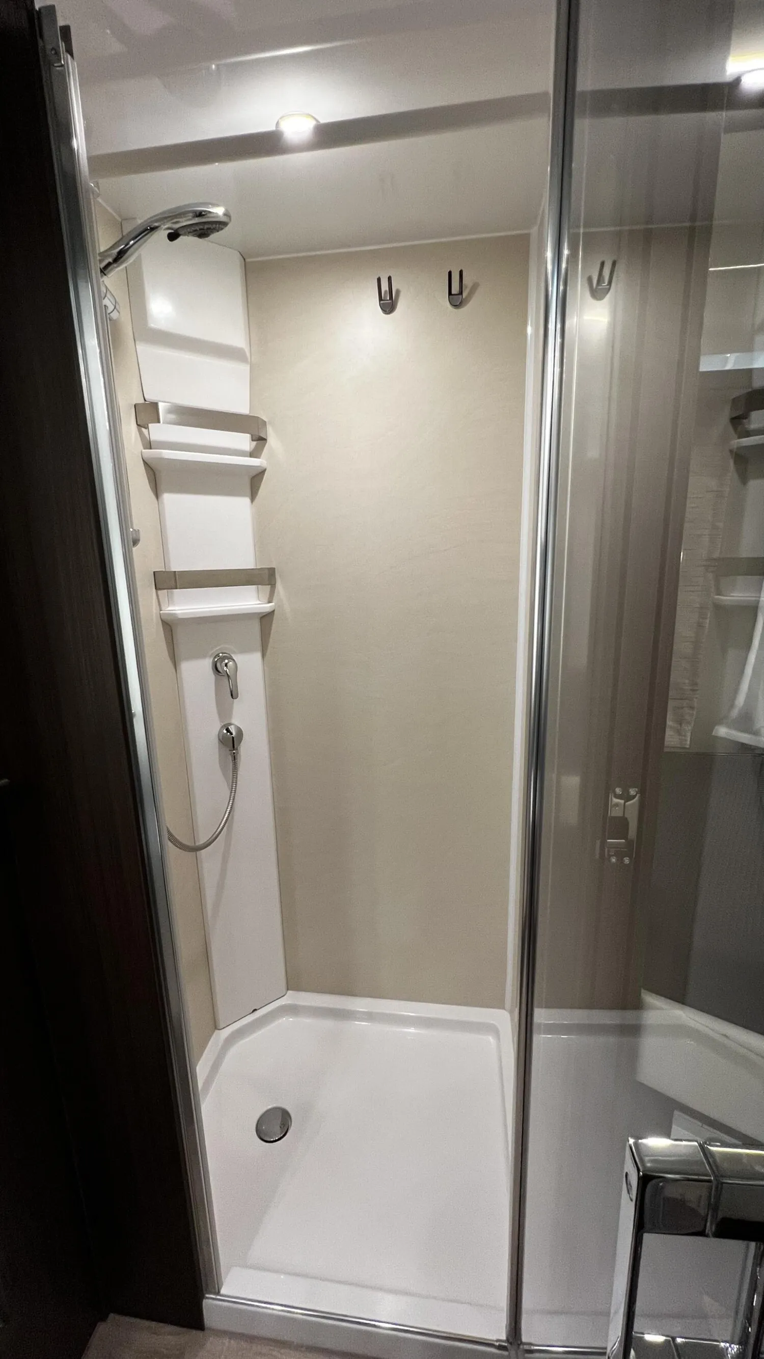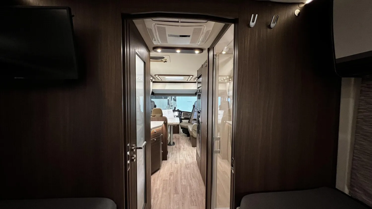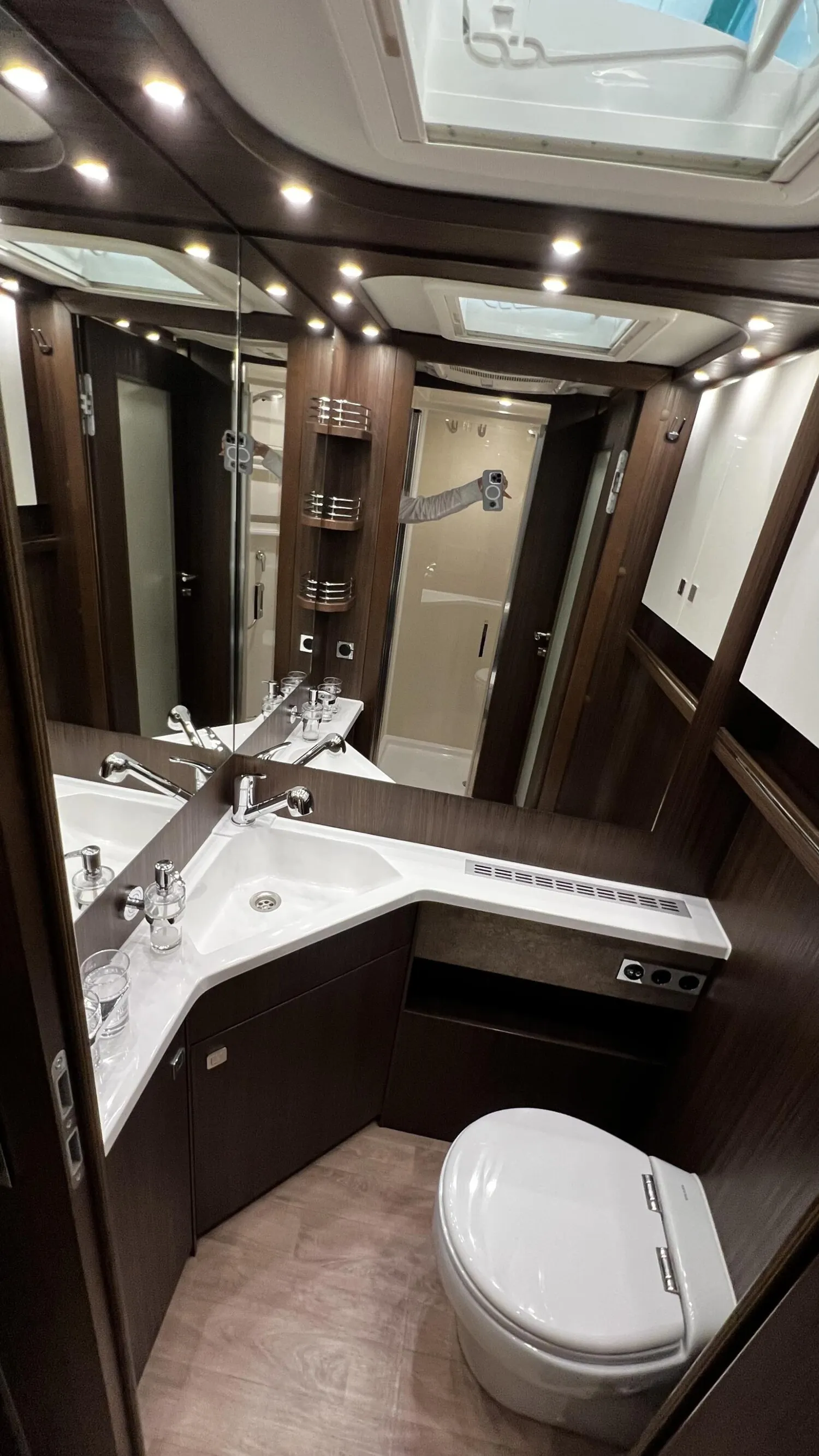 - » Dach-Klimagerät im Flur zwischen Dusche und Bad mit Infrarot-Fernbedienung (Fahrzeuggesamthöhe + 130 mm)