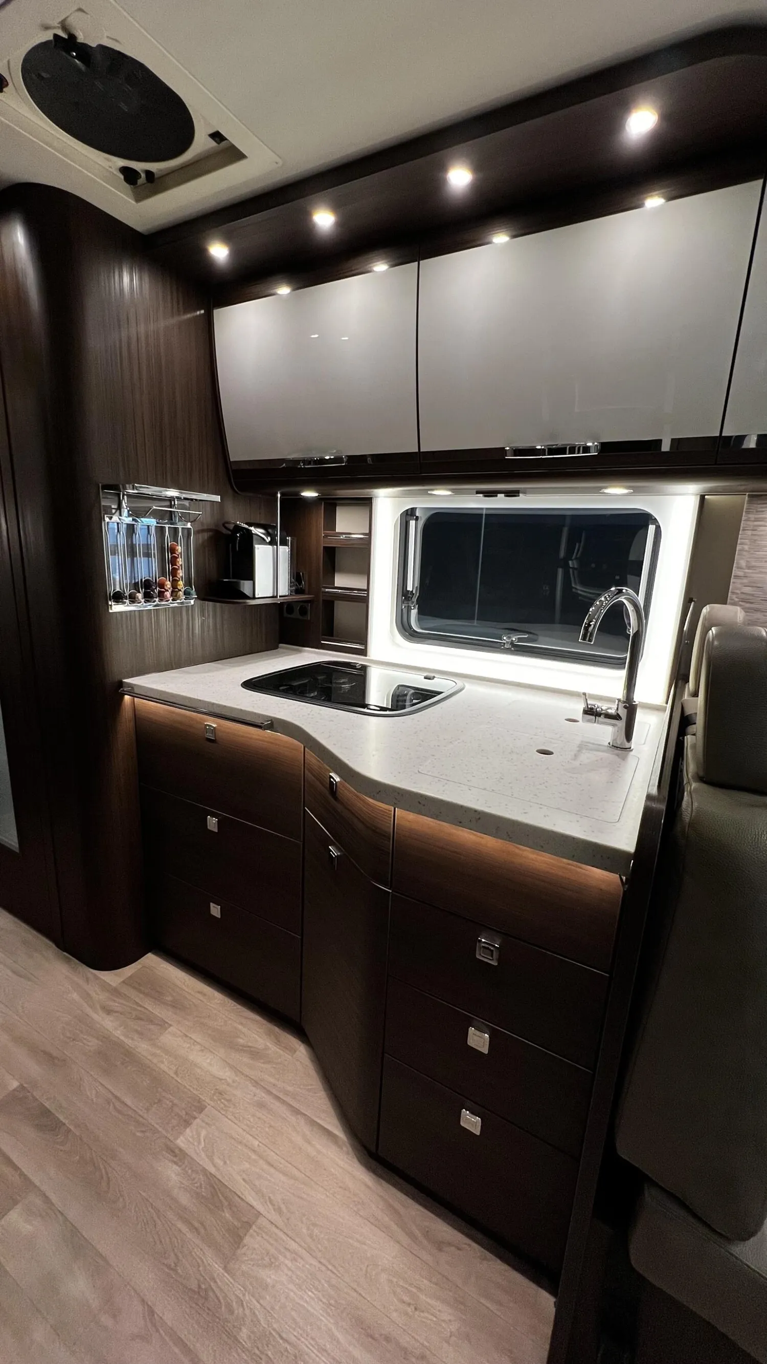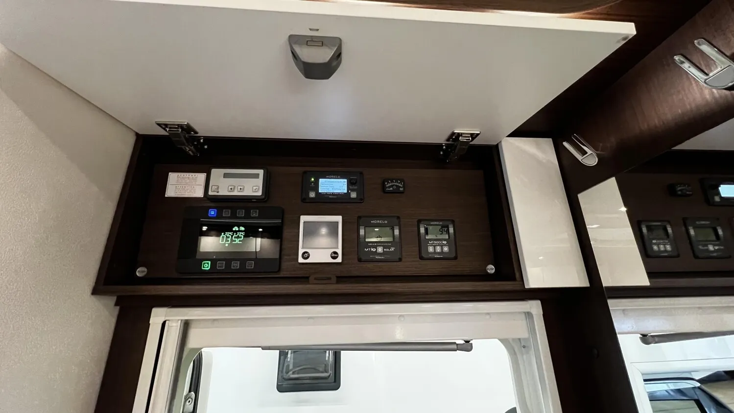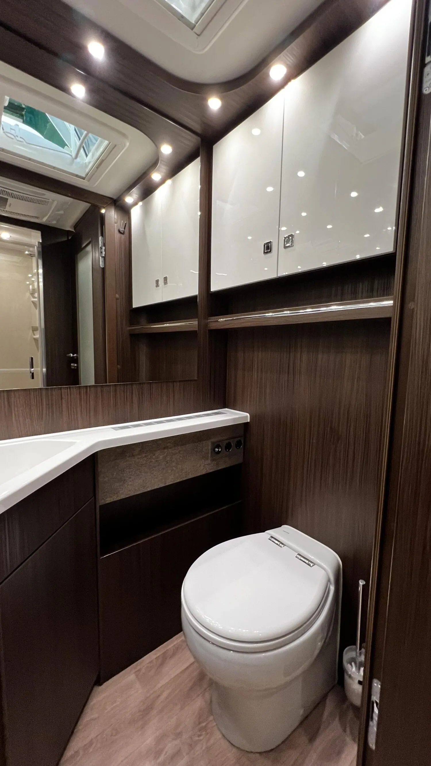 - » Satelliten-TV-Anlage Oyster V mit 32" LED-Flachbildschirm im Dinettenoberschrank (Beifahrerseite) mit Gläsern, elektrisch absenkbar, 85 cm Spiegel, vollautomatische Ausrichtung, Mehrteilnehmer-Ausstattung durch TWIN-LNB und 24? LED-Flachbildschirm im Schlafraum (Fahrzeuggesamthöhe + ca. 80 mm)