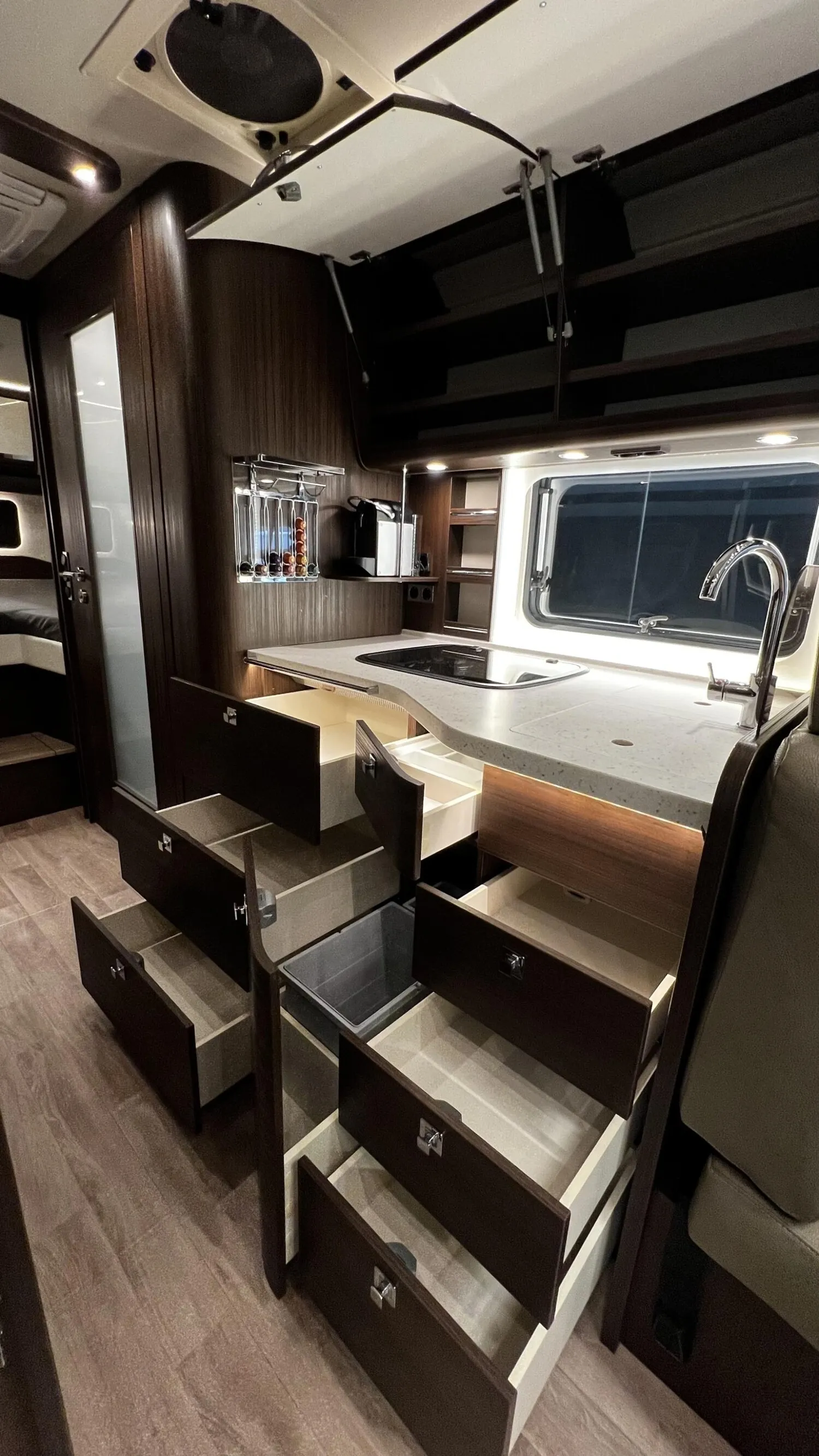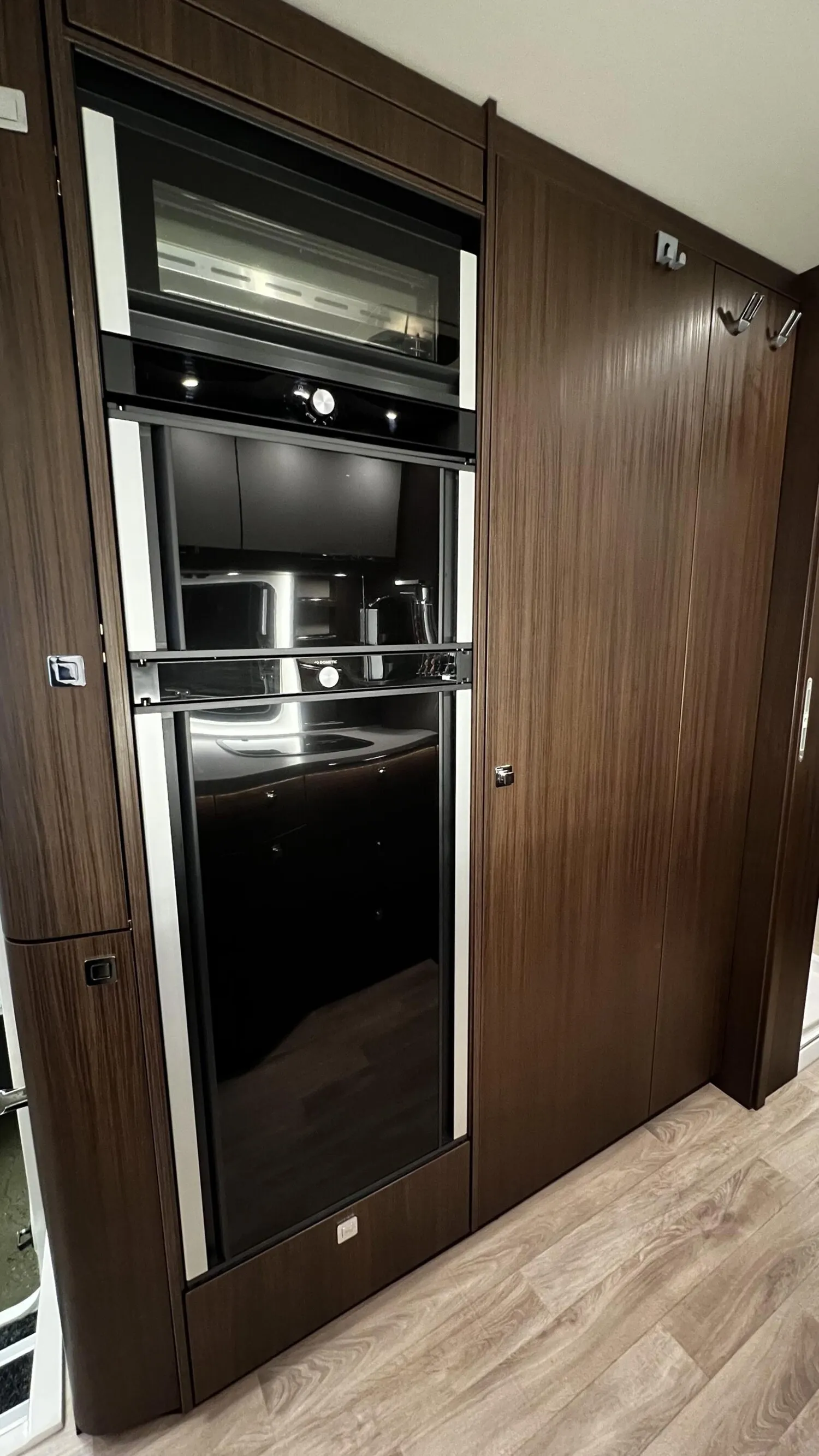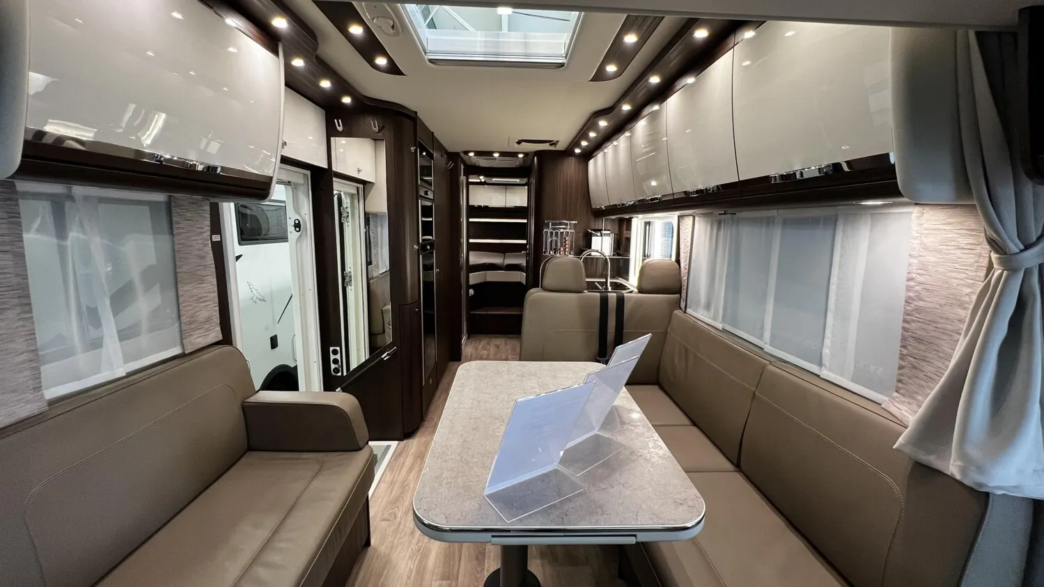 - » Satelliten-TV-Anlage Oyster V mit 32" LED-Flachbildschirm im Dinettenoberschrank (Beifahrerseite) mit Gläsern, elektrisch absenkbar, 85 cm Spiegel, vollautomatische Ausrichtung, Mehrteilnehmer-Ausstattung durch TWIN-LNB und 24? LED-Flachbildschirm im Schlafraum (Fahrzeuggesamthöhe + ca. 80 mm)
