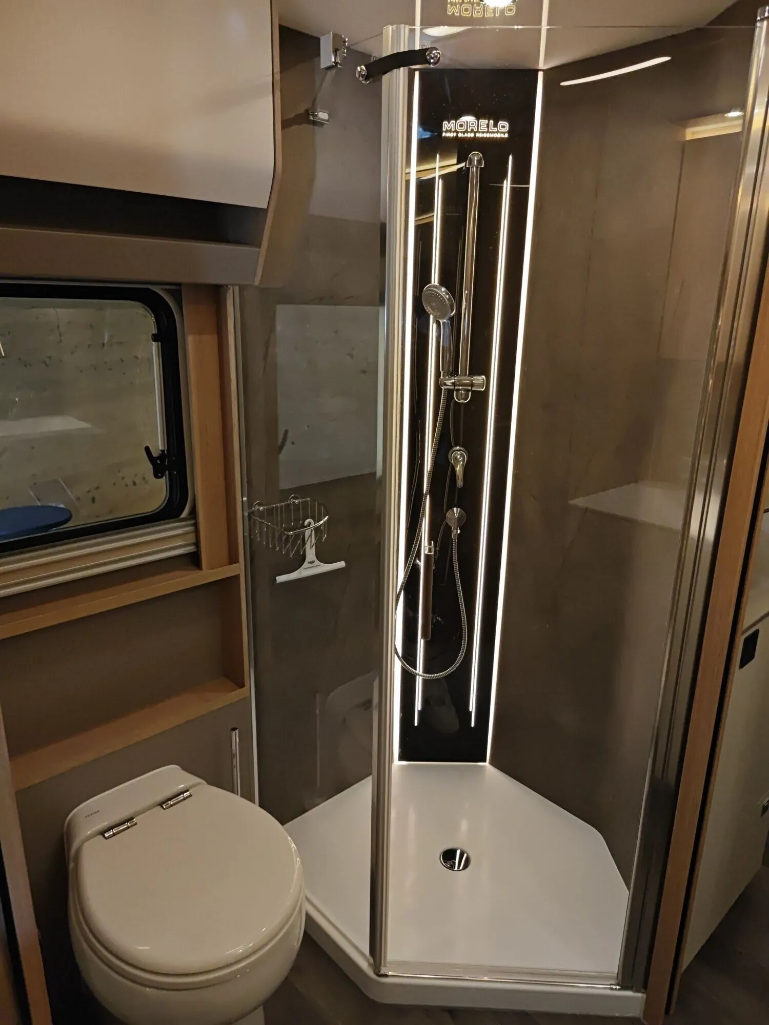 - Dach-Klimagerät, im Bad mit Infrarot Fernbedienung (Fahrzeuggesamthöhe + 130 mm), Betrieb nur über Netzanschluss