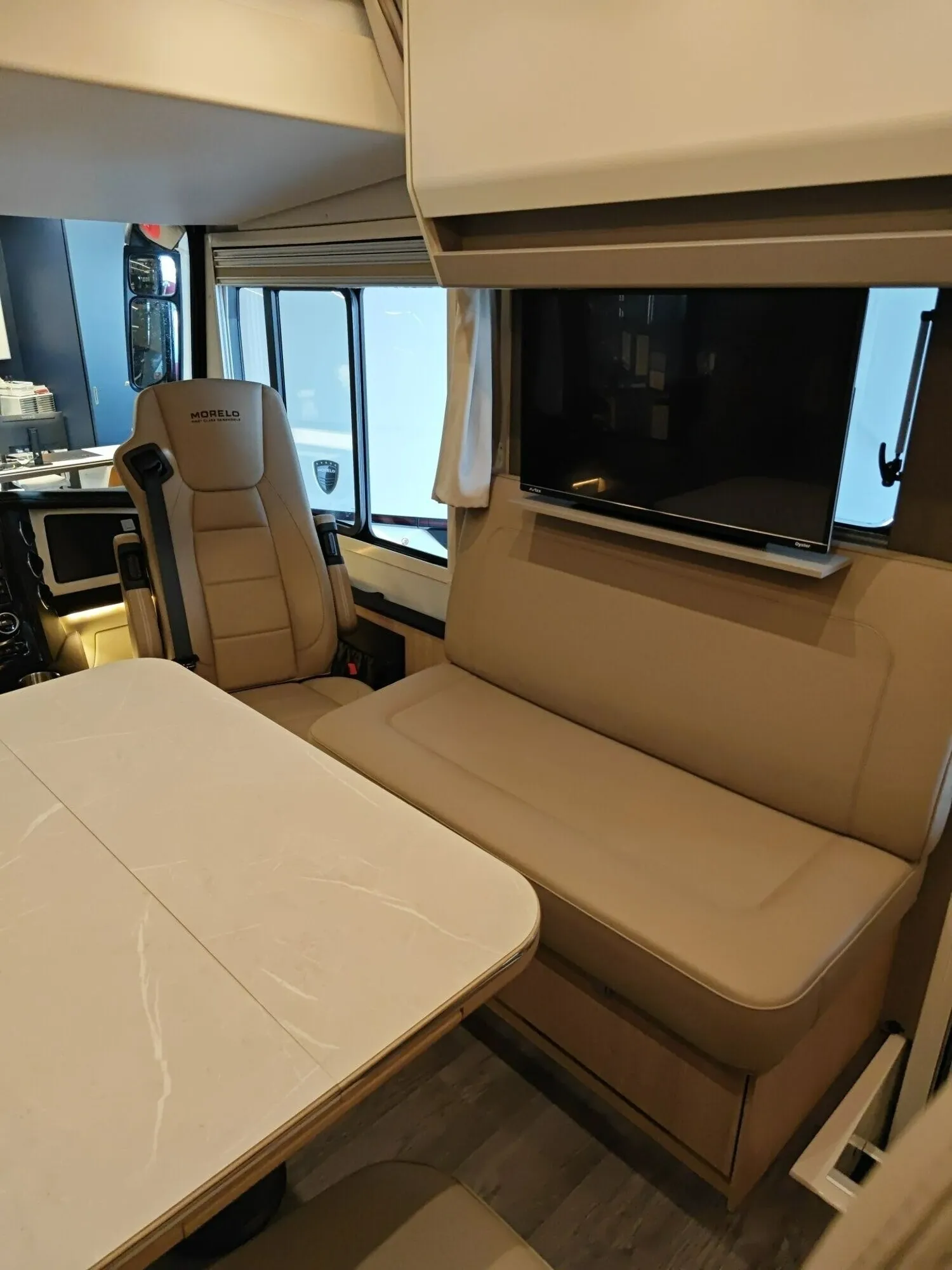 - 32" TV im Vitrinenoberschrank Beifahrerseite, 27" TV im Schlafraum