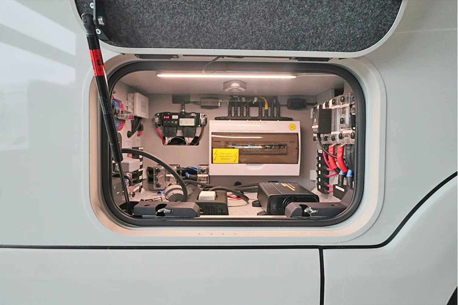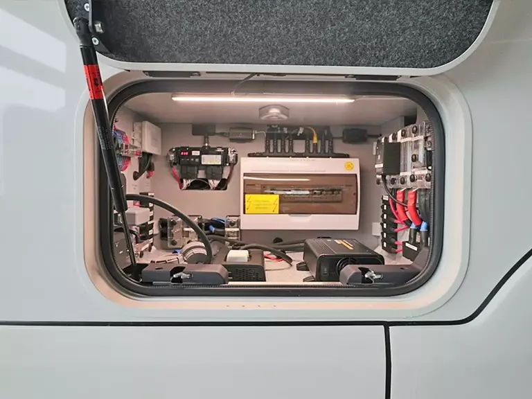 - Elektro-Paket "Energie Lithium Power" (statt Serie) Lithium Batterie 340AH Kombi-Ladegerät / Wechselrichter 3.000Watt / 120 A, Batterieschutz, 230V Steckdose in Garage