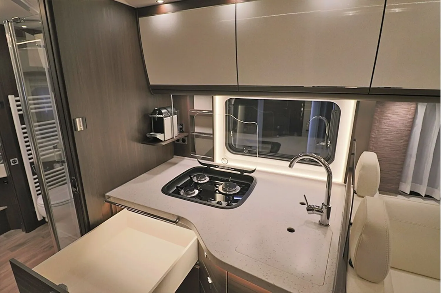 - Gastank 120 Liter, mit Fern-Befüllung in der Seitenwand und Füllstandsanzeige im Display des Kontrollpanels