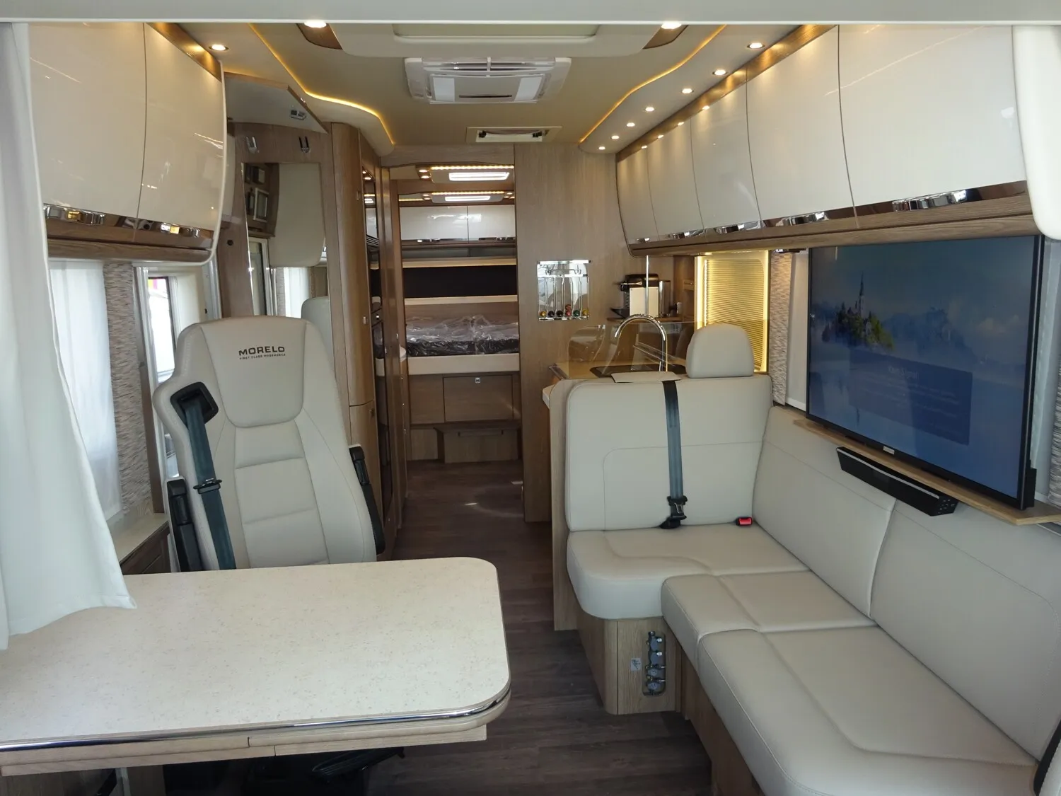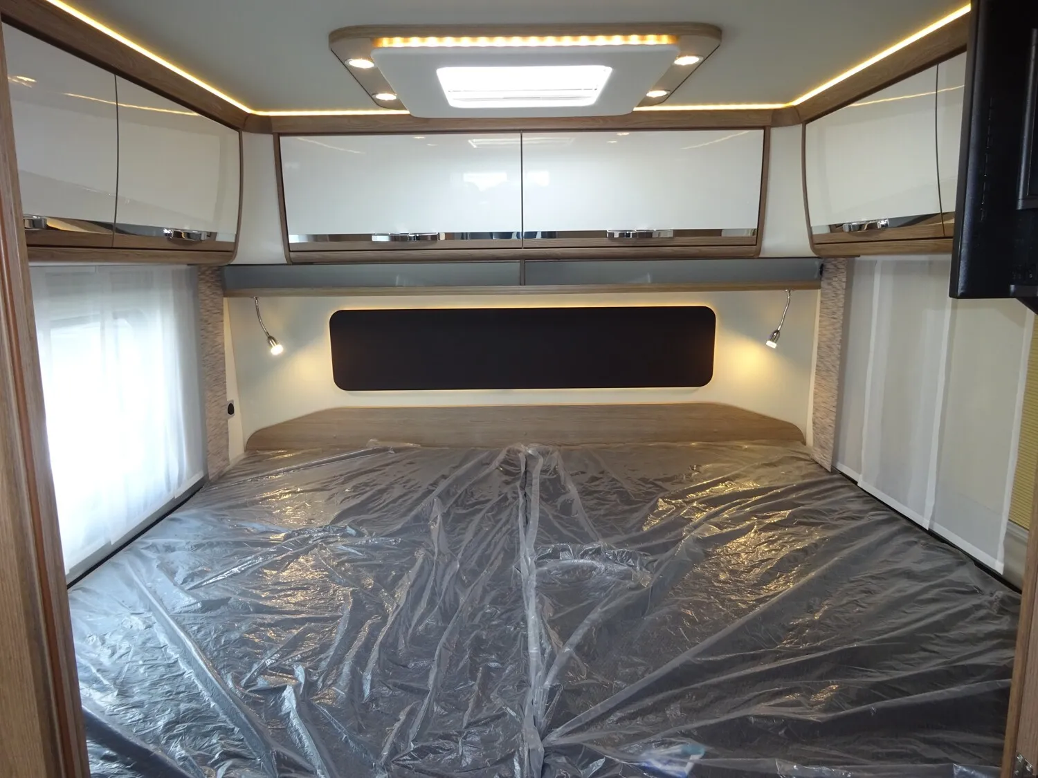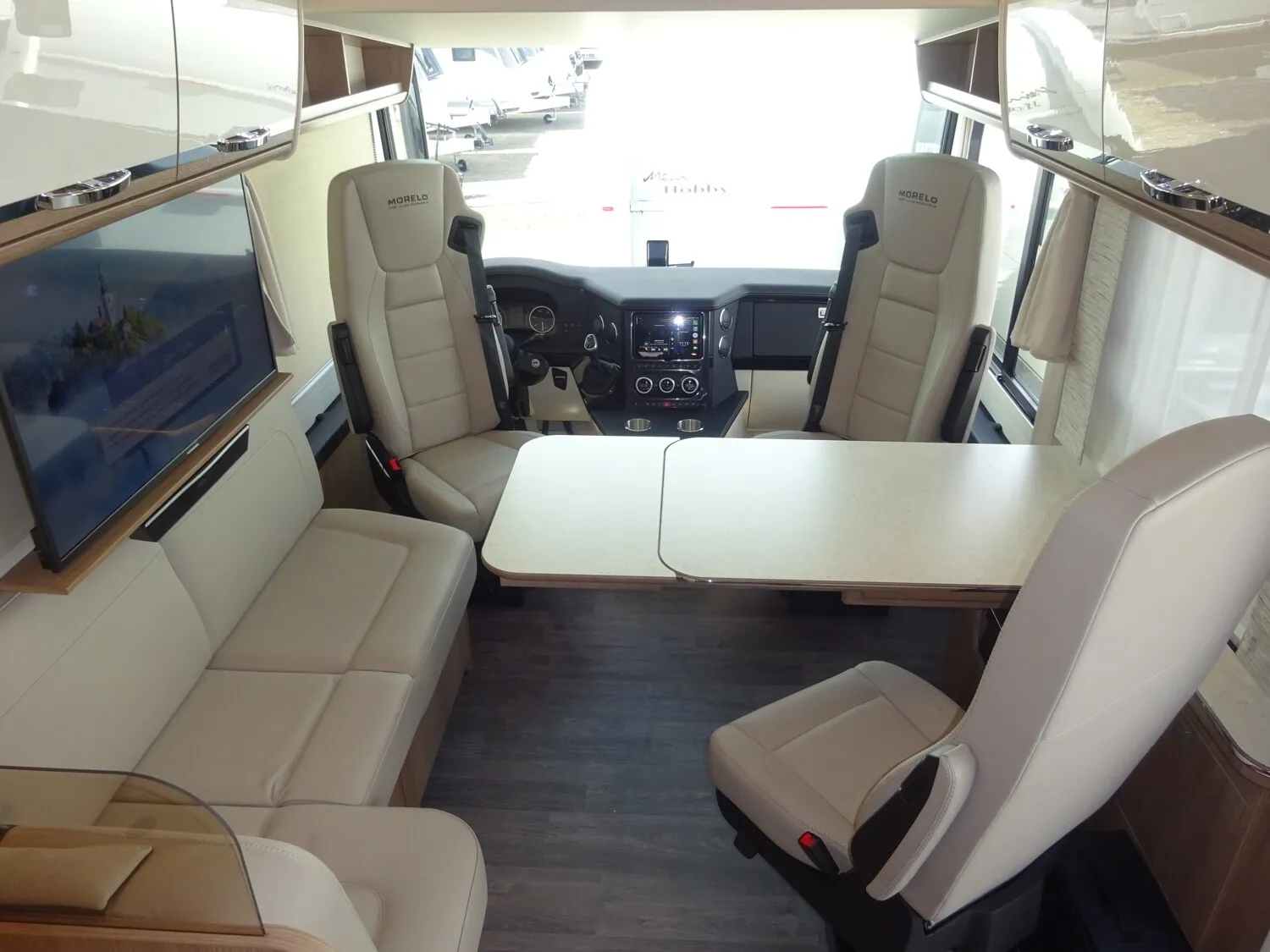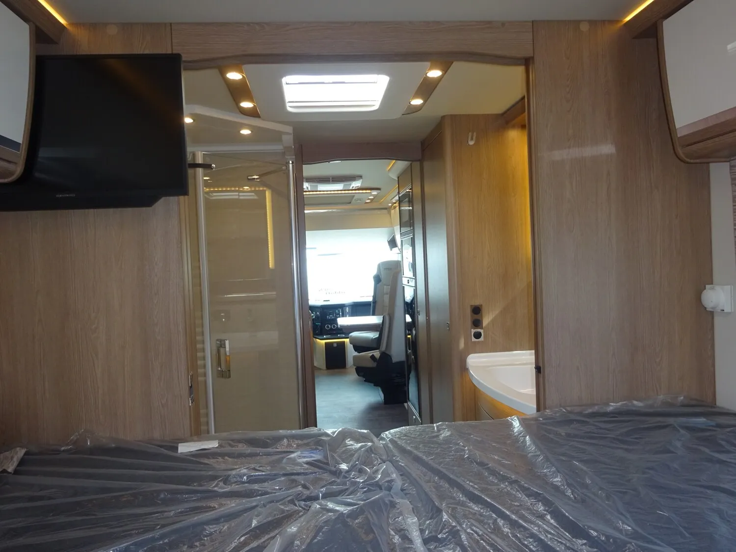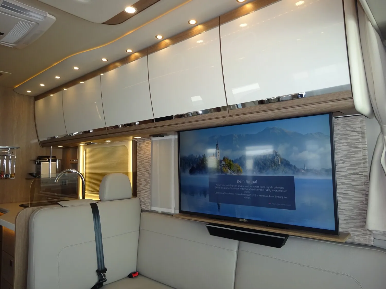 - » TV PAKET mit LED Flachbildschirm: Satelliten-TV-Anlage Oyster V mit 85cm Spiegel, vollautomatische Ausrichtung und Mehrteilnehmer-Ausstattung durch TWIN-LNB (Fahrzeuggesamthöhe + ca. 80 mm), LED Flachbildschirme mit Smart TV Funktion, Elektrisch absenkbarer 40" TV im Dinettenoberschrank (Fahrerseite) mit Gläsern und Soundbar, und 27" TV im Schlafraum