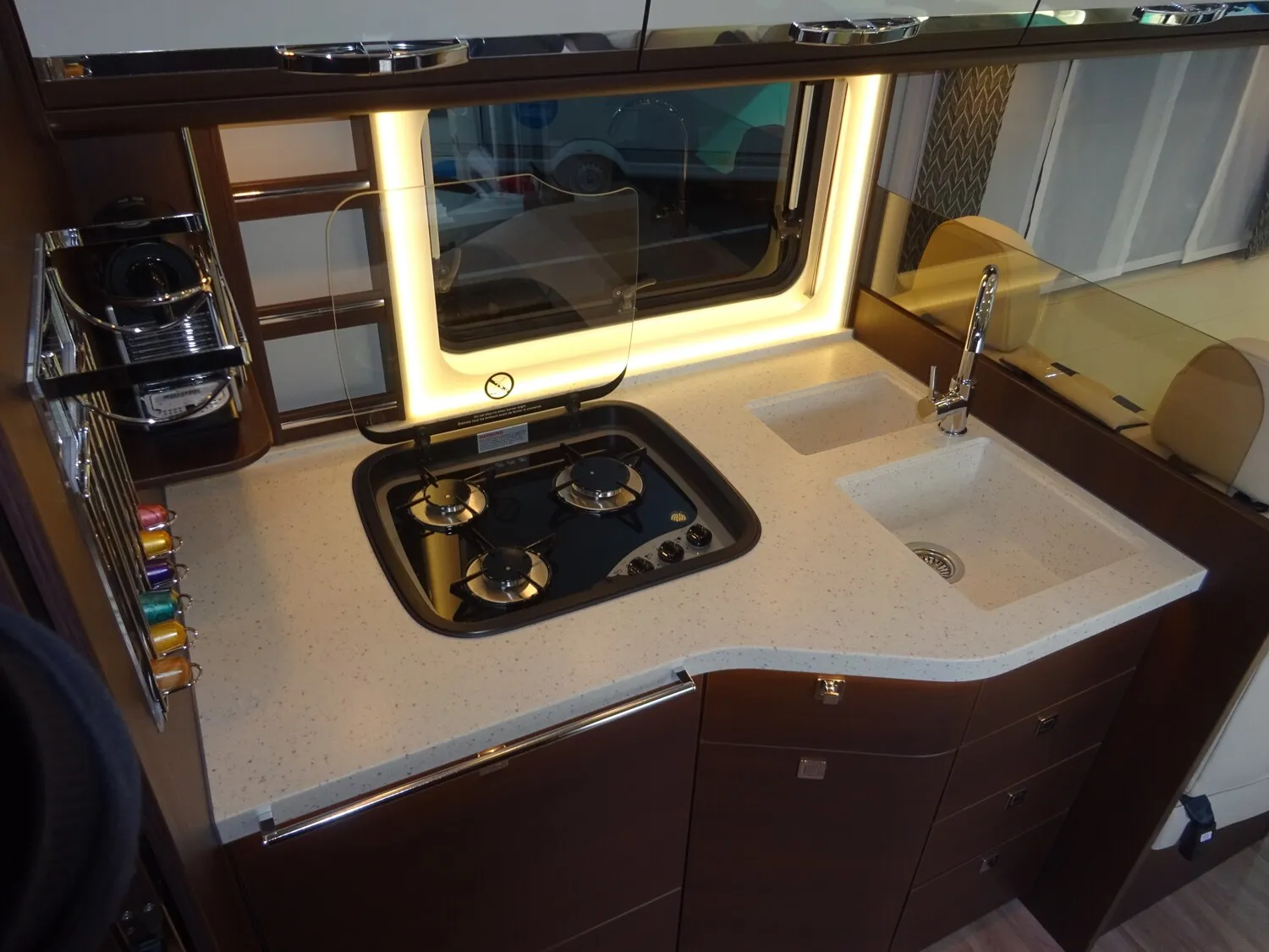 - » Gastank 120 Liter mit Fern-Befüllung in der Seitenwand und Füllstandanzeige im Display des Kontrollpanels