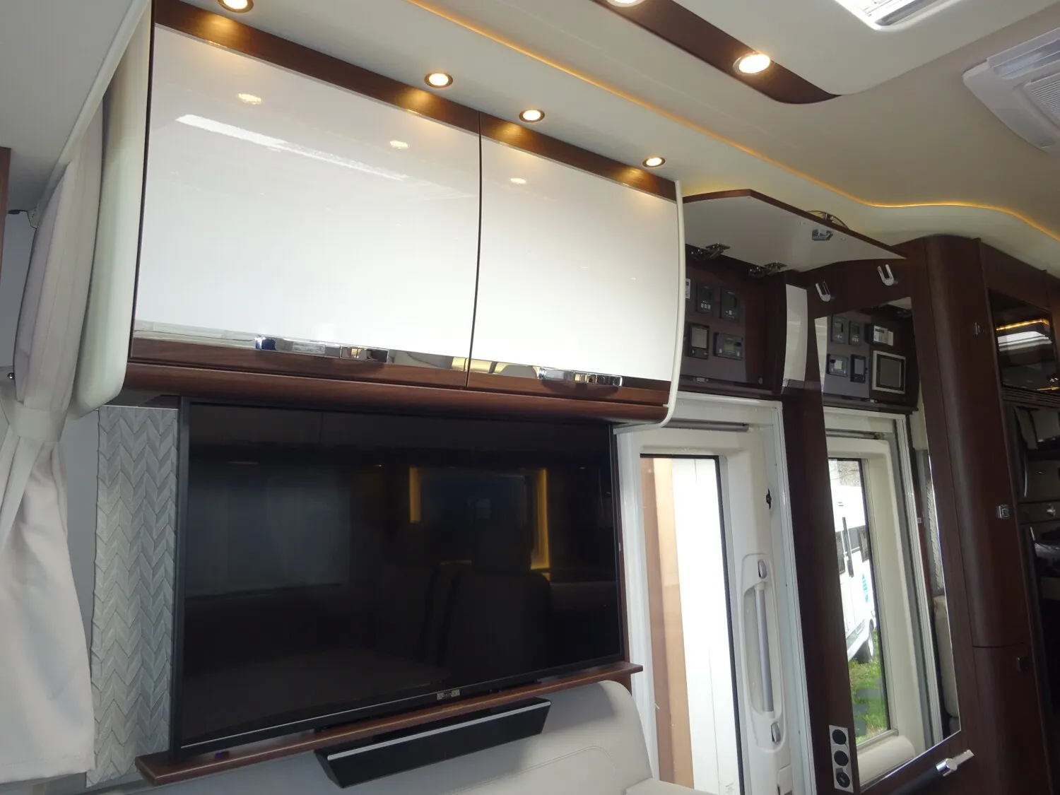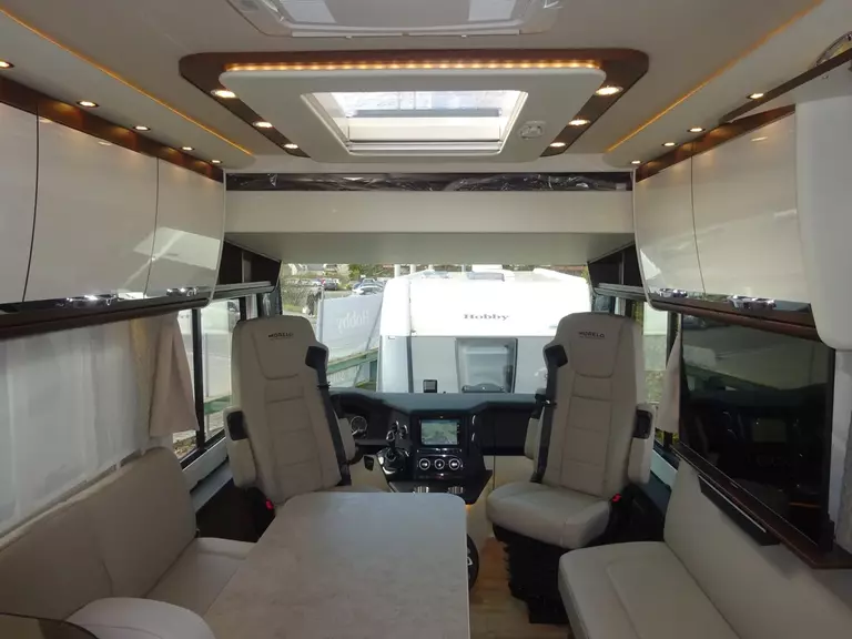 - » TV Pakete mit LED Flachbildschirm: elektrisch absenkbarer 40" TV im Dinettenoberschrank (Beifahrerseite) mit Gläsern und Soundbar, und 27" TV im Schlafraum, Satelliten-TV-Anlage Oyster V mit 85 cm Spiegel, vollautomatische Ausrichtung und Mehrteilnehmer-Ausstattung durch TWIN-LNB, LED Flachbildschirm mit Smart TV Funktion