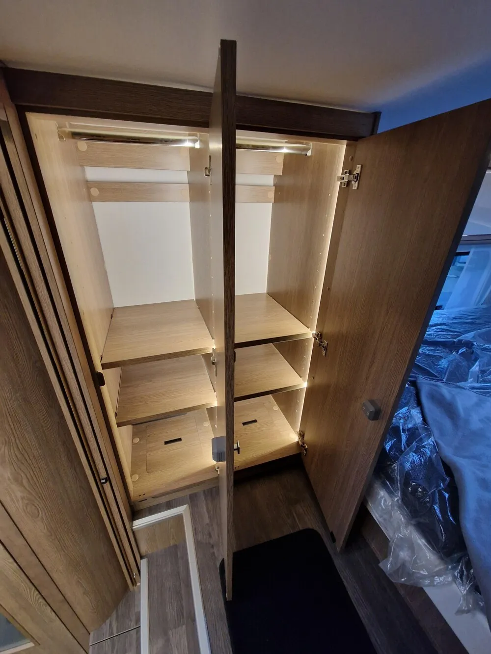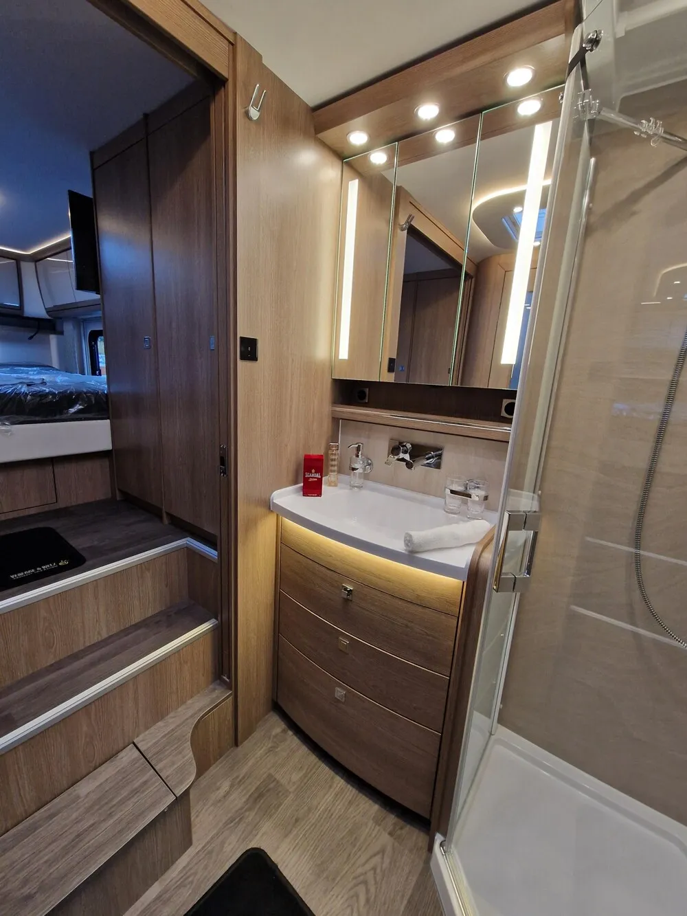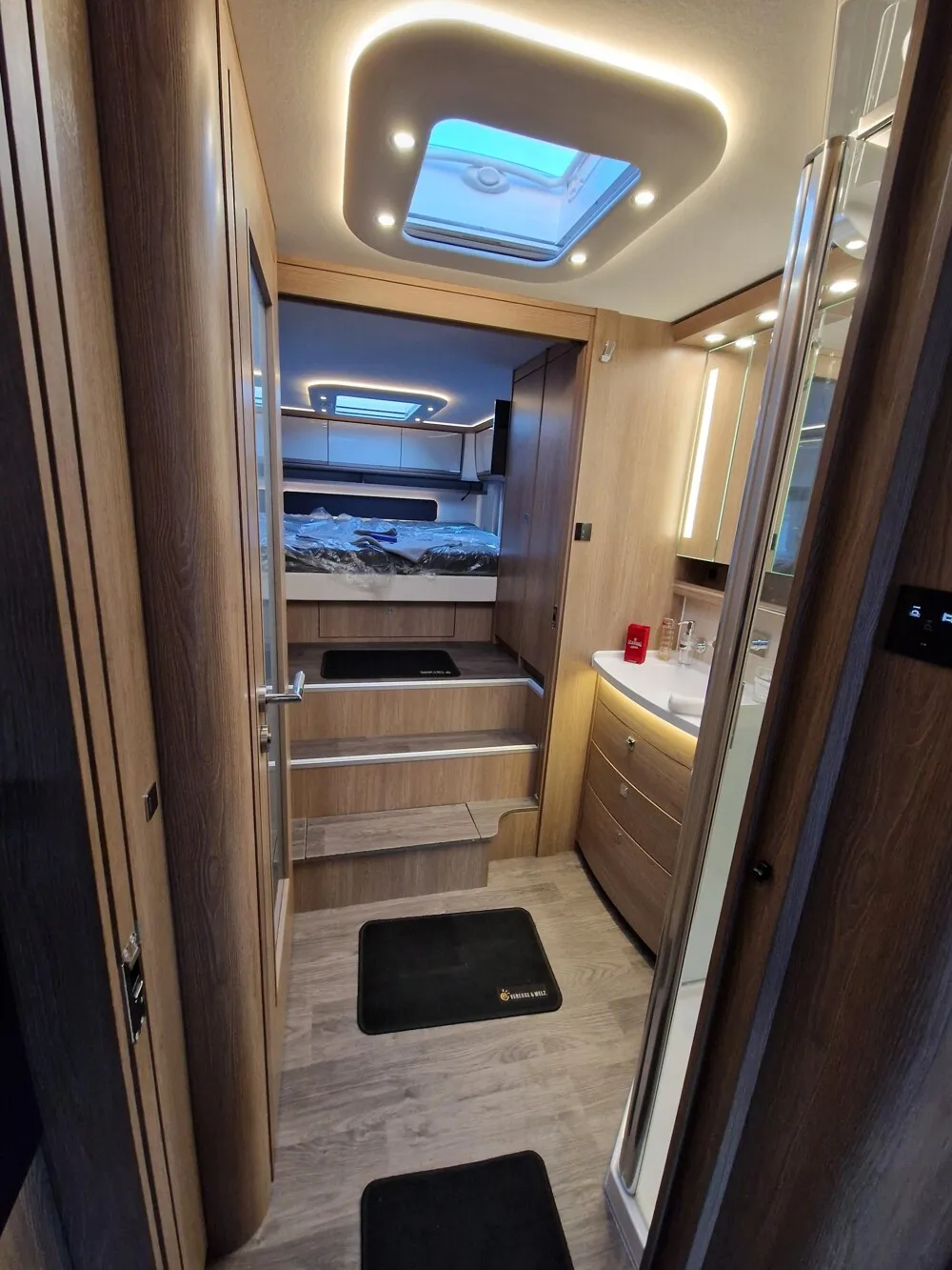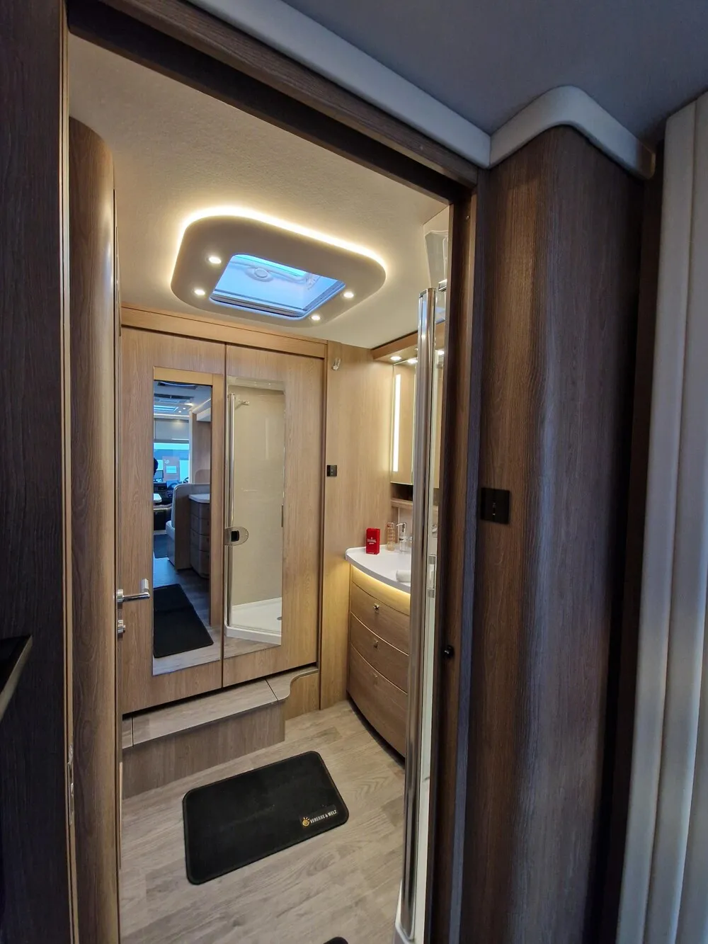 - TV Pakete mit LED Flachbildschirm (Satelliten-TV-Anlage Oyster V mit 85 cm Spiegel, vollautomatische Ausrichtung und Mehrteilnehmer-Ausstattung durch TWIN-LNB (Fahrzeuggesamthöhe + ca. 80 mm), LED Flachbildschirm mit Smart TV Funktion, elektrisch absenkbarer 39 Zoll TV im Dinettenoberschrank (Beifahrerseite) mit Gläsern und 27 Zoll TV im Schlafraum)