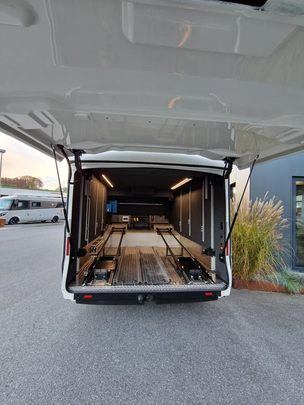 - Zurrschienenpaket mit 3 zusätzlichen Verzurrschienen inkl. je 3 Verzurrösen in Heckgarage, jeweils auf Fahrer- und Beifahrerseite