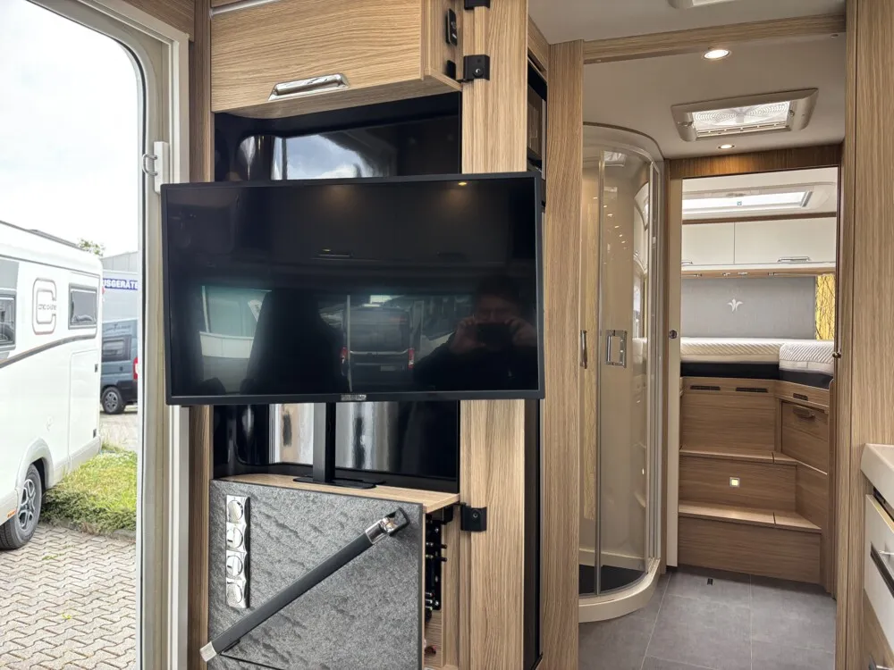 - MP1 - Multimedia Paket ohne Sat.-Anlage (Navigationsgerät mit 7" Touchscreen, inkl. Radio mit DAB+, Bluetooth und Rückfahrkamera hinter Lilien-Emblem, Radiovorbereitung "Soundsystem" (4 High-End 2-Wege-Lautsprecher, Subwoofer, Dachantenne), LED-Fernsehgerät 22" in Mediatower, inkl. integriertem DVB-S2-/DVB-T2-Receiver, DVD-Schacht und Resonanzlautsprecher)