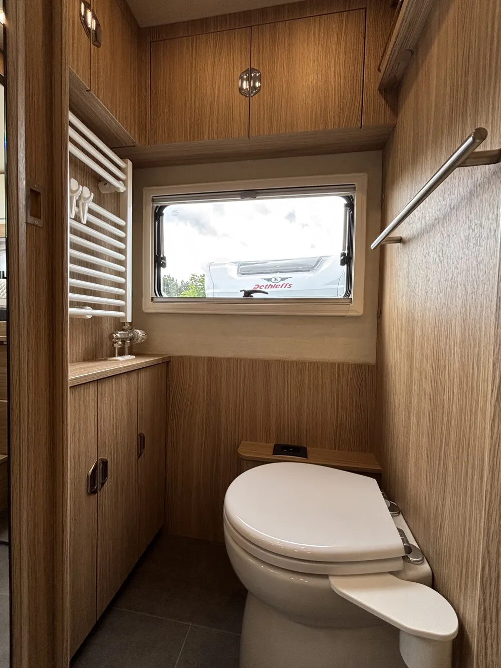 - Festtanktoilette (Keramik) mit 120 l Tank und elektrischer Schieberfunktion (nur für Modelle 85 E, 88 EK, LF)