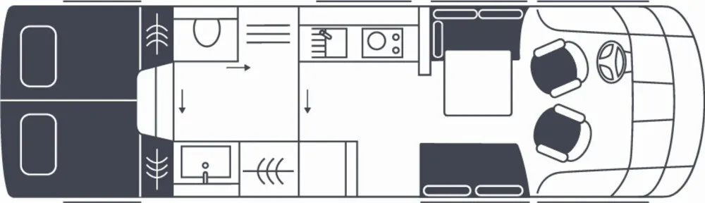 - Sofa Fahrerseite zur L-Sitzbank umbaubar (2 zusätzliche Gurtsitze)