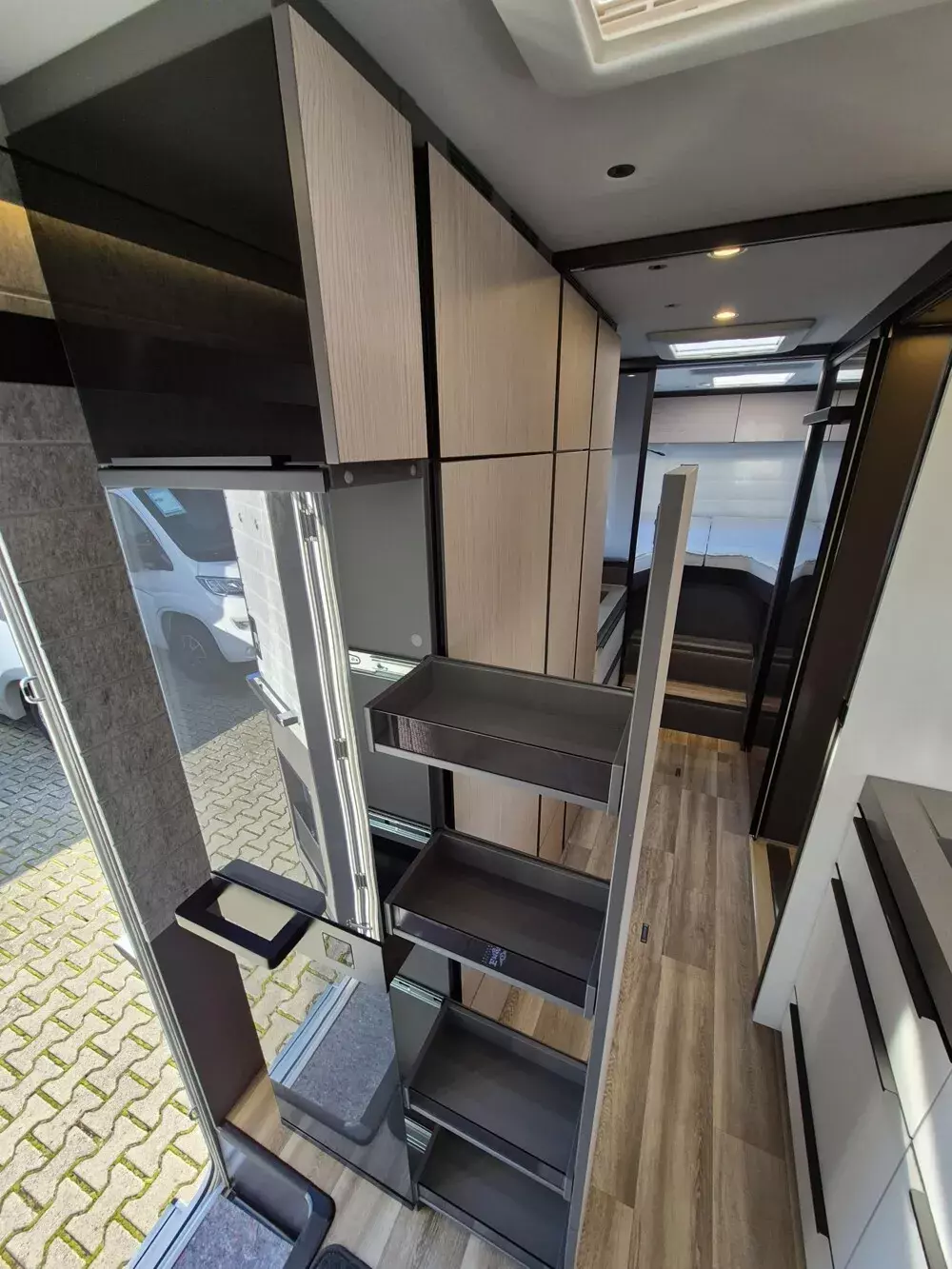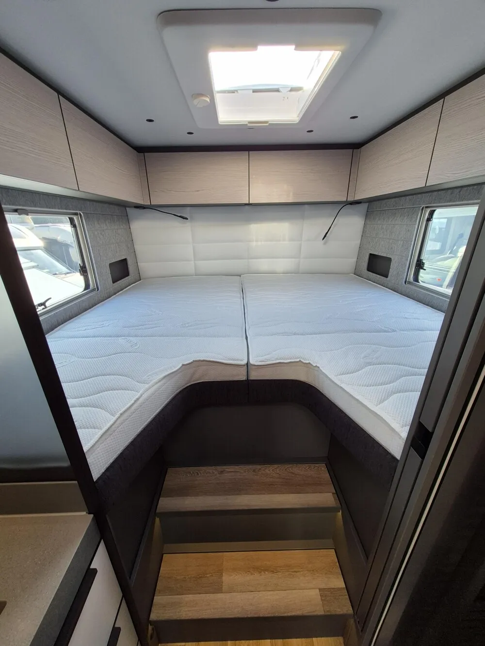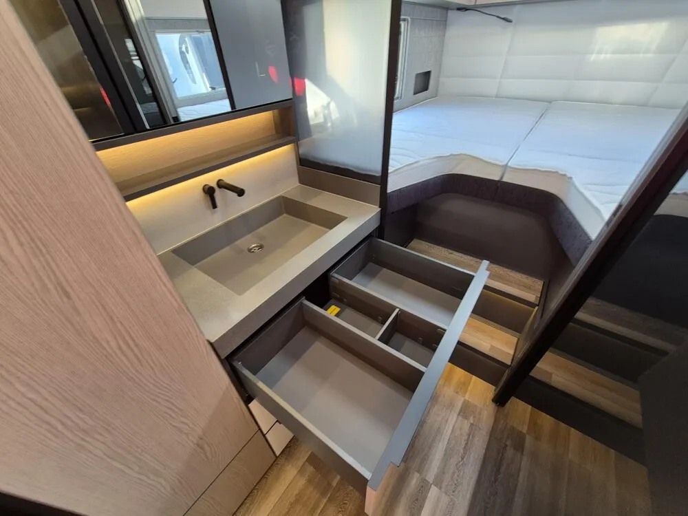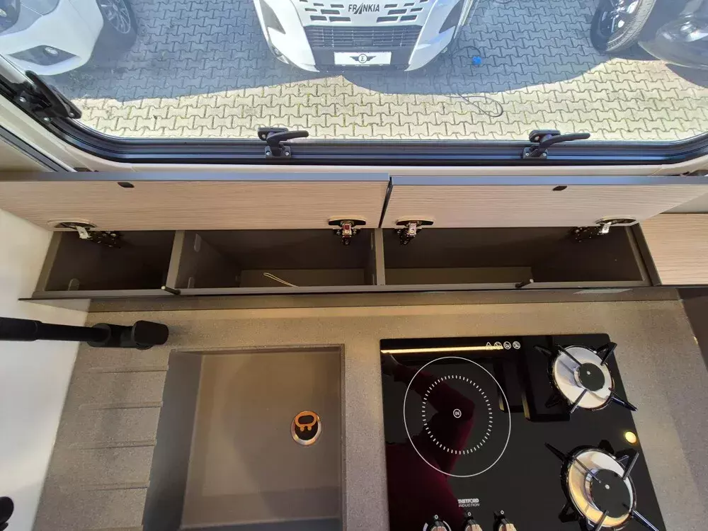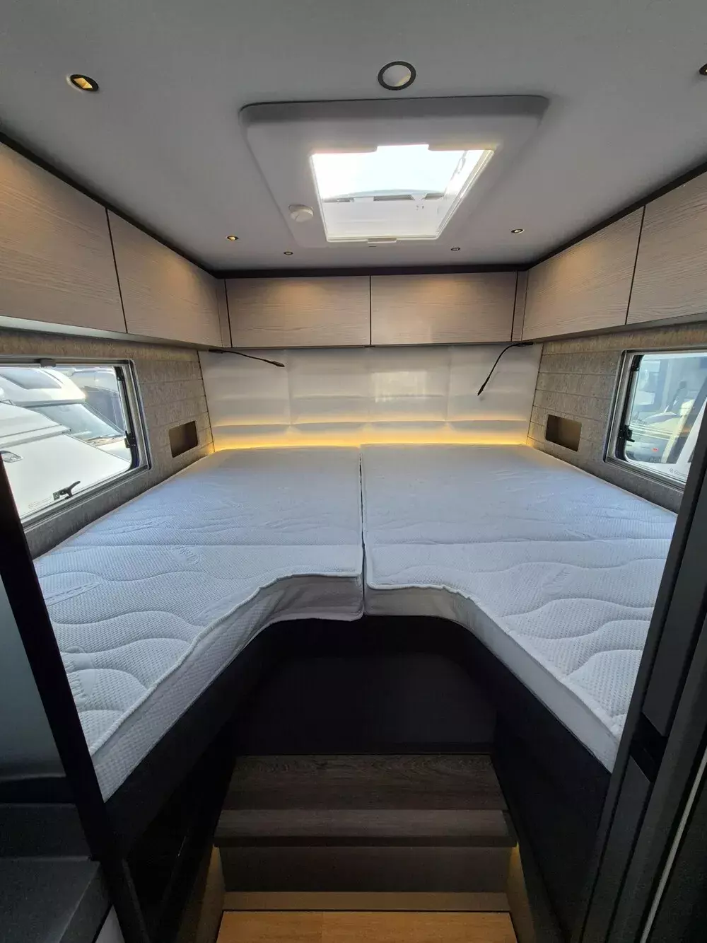 - LP - Liner Paket (Isolationsplissee für die Windschutzscheibe, elektrisch verstellbar, auch als Sonnenblende und Sichtschutz verwendbar, Außenspiegel mit Weitwinkel, elektrisch verstell- und beheizbar (in Wagenfarbe lackiert), Sensorgesteuerte Aufbautür, Panoramadachluke (Midi-Heki) über Wohnraum, Akustikverkleidung an den Seitenwänden, Komfortsitze Fahrer und Beifahrer (SKA), Fenster Fahrer/Beifahrer doppelverglast, Komfortmatratzen inkl. Froli-Schlafsystem für Heckbett, Fliegenschutz-Schiebetür, Intuitives Beleuchtungskonzept (Bewegungs- und Lichtsensoren für Nachtflurbeleuchtung sowie automatische Beleuchtung für Wohnraum, Heckgarage und Versorgungsfach über Tür- und Klappenkontakten))