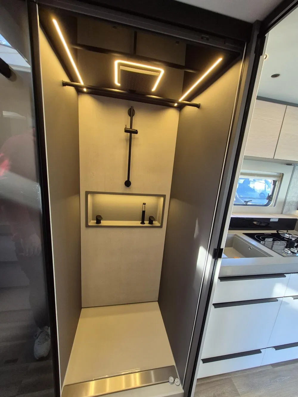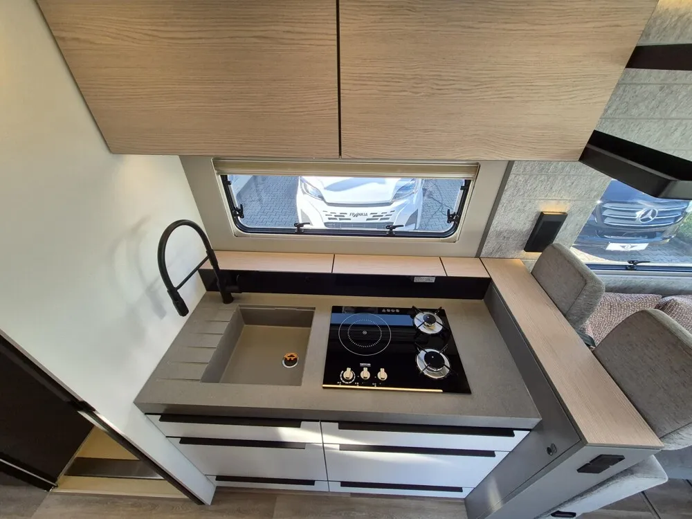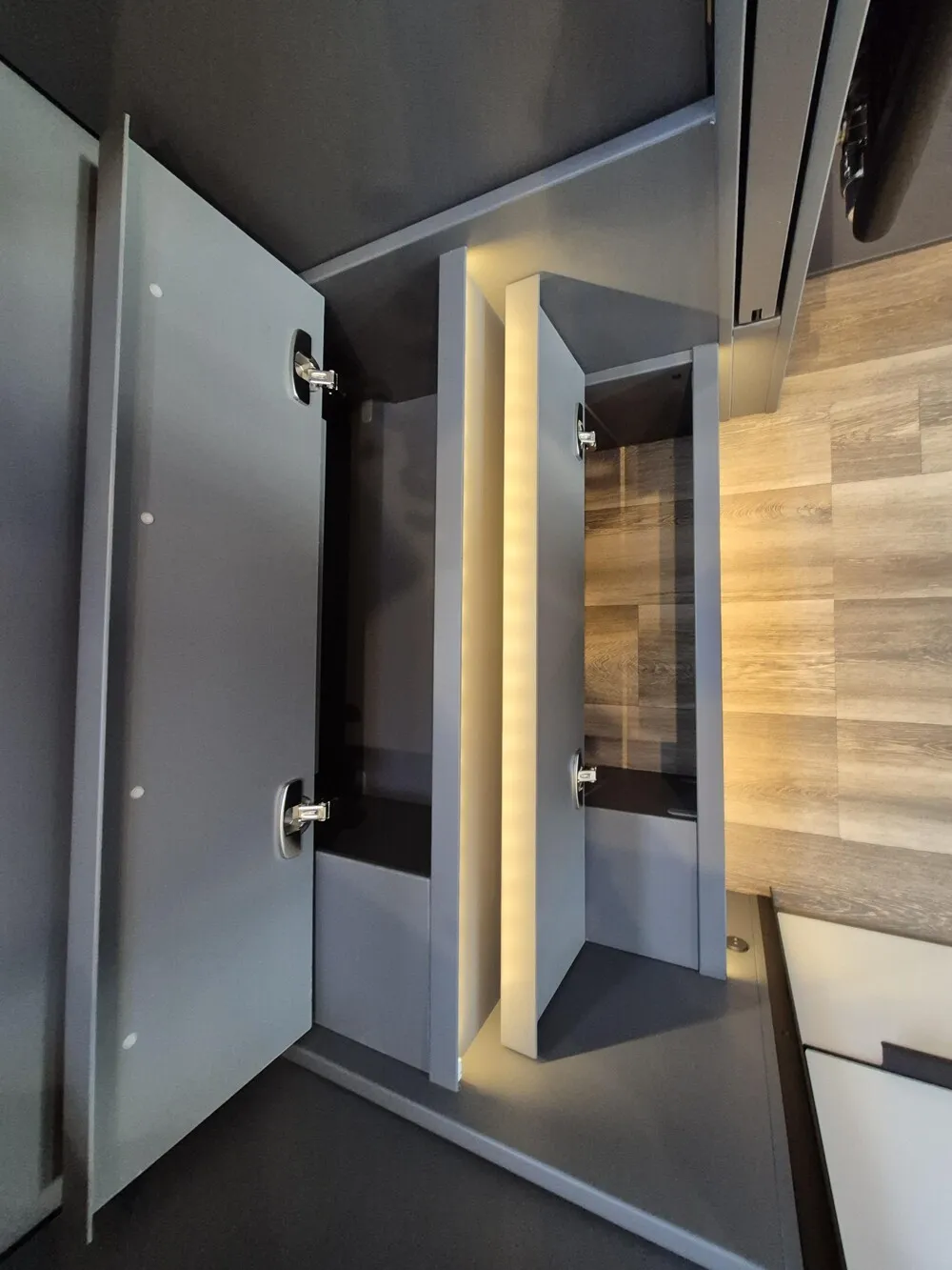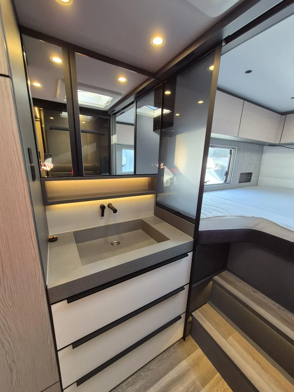 - LP - Liner Paket (Isolationsplissee für die Windschutzscheibe, elektrisch verstellbar, auch als Sonnenblende und Sichtschutz verwendbar, Außenspiegel mit Weitwinkel, elektrisch verstell- und beheizbar (in Wagenfarbe lackiert), Sensorgesteuerte Aufbautür, Panoramadachluke (Midi-Heki) über Wohnraum, Akustikverkleidung an den Seitenwänden, Komfortsitze Fahrer und Beifahrer (SKA), Fenster Fahrer/Beifahrer doppelverglast, Komfortmatratzen inkl. Froli-Schlafsystem für Heckbett, Fliegenschutz-Schiebetür, Intuitives Beleuchtungskonzept (Bewegungs- und Lichtsensoren für Nachtflurbeleuchtung sowie automatische Beleuchtung für Wohnraum, Heckgarage und Versorgungsfach über Tür- und Klappenkontakten))