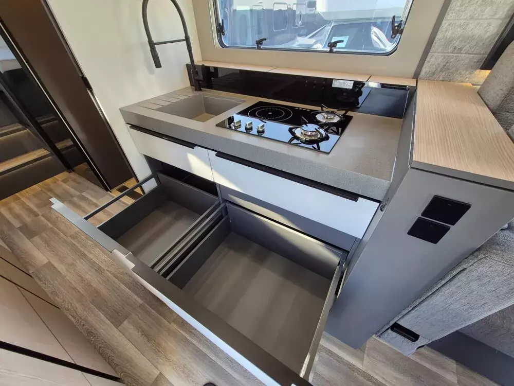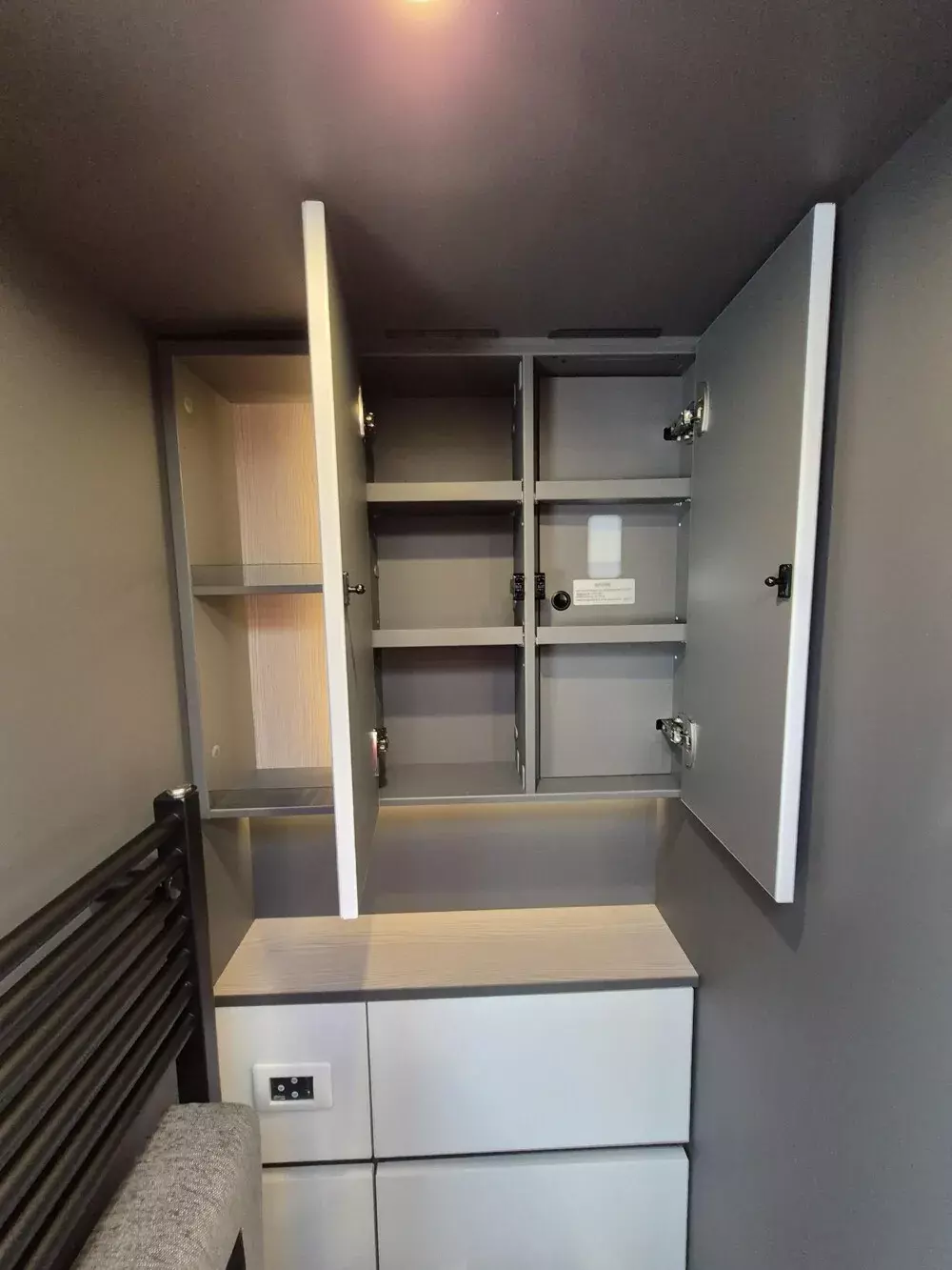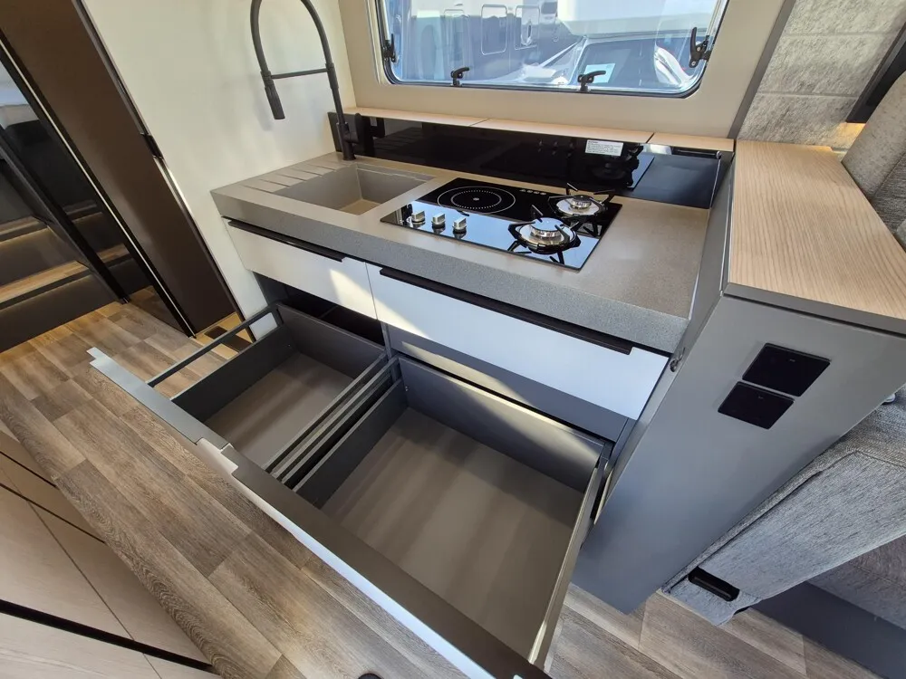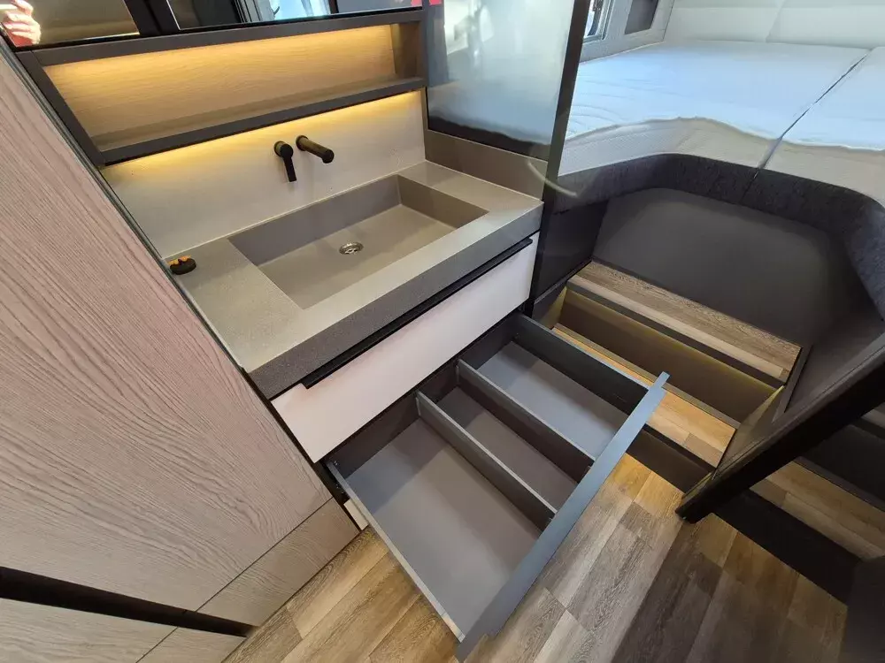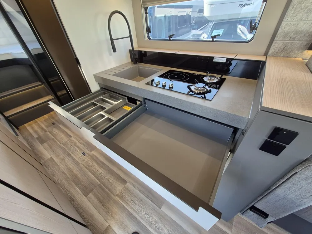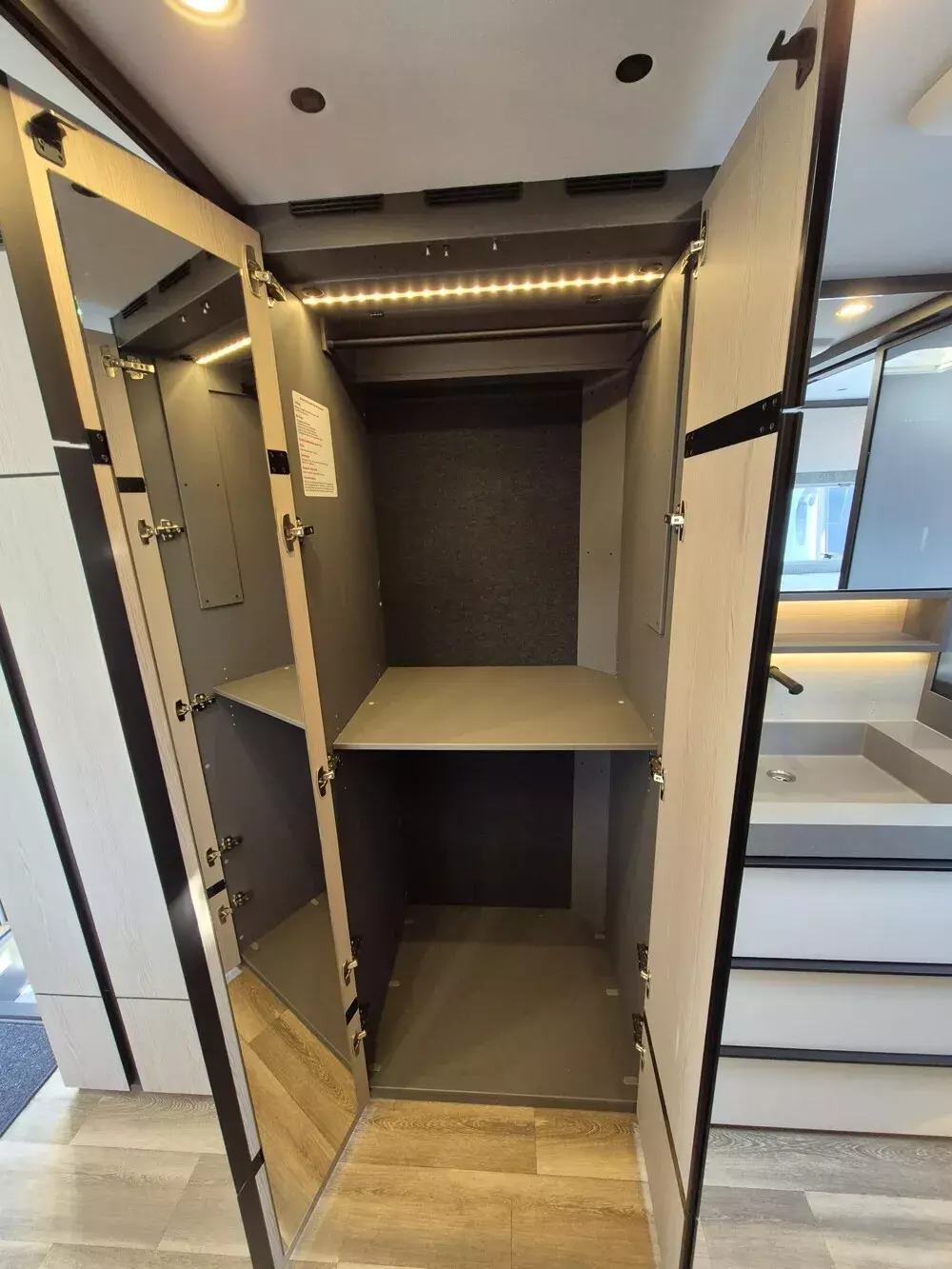 - LP - Liner Paket (Isolationsplissee für die Windschutzscheibe, elektrisch verstellbar, auch als Sonnenblende und Sichtschutz verwendbar, Außenspiegel mit Weitwinkel, elektrisch verstell- und beheizbar (in Wagenfarbe lackiert), Sensorgesteuerte Aufbautür, Panoramadachluke (Midi-Heki) über Wohnraum, Akustikverkleidung an den Seitenwänden, Komfortsitze Fahrer und Beifahrer (SKA), Fenster Fahrer/Beifahrer doppelverglast, Komfortmatratzen inkl. Froli-Schlafsystem für Heckbett, Fliegenschutz-Schiebetür, Intuitives Beleuchtungskonzept (Bewegungs- und Lichtsensoren für Nachtflurbeleuchtung sowie automatische Beleuchtung für Wohnraum, Heckgarage und Versorgungsfach über Tür- und Klappenkontakten))