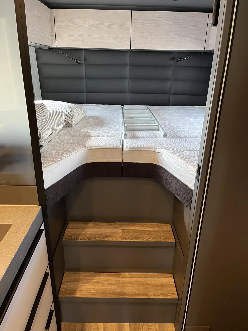 - LP - Liner Paket (Isolationsplissee für die Windschutzscheibe, elektrisch verstellbar, auch als Sonnenblende und Sichtschutz verwendbar, Außenspiegel mit Weitwinkel, elektrisch verstell- und beheizbar (in Wagenfarbe lackiert), Sensorgesteuerte Aufbautür, Panoramadachluke (Midi-Heki) über Wohnraum, Akustikverkleidung an den Seitenwänden, Komfortsitze Fahrer und Beifahrer (SKA), Fenster Fahrer/Beifahrer doppelverglast, Komfortmatratzen inkl. Froli-Schlafsystem für Heckbett, Fliegenschutz-Schiebetür, Intuitives Beleuchtungskonzept (Bewegungs- und Lichtsensoren für Nachtflurbeleuchtung sowie automatische Beleuchtung für Wohnraum, Heckgarage und Versorgungsfach über Tür- und Klappenkontakten))