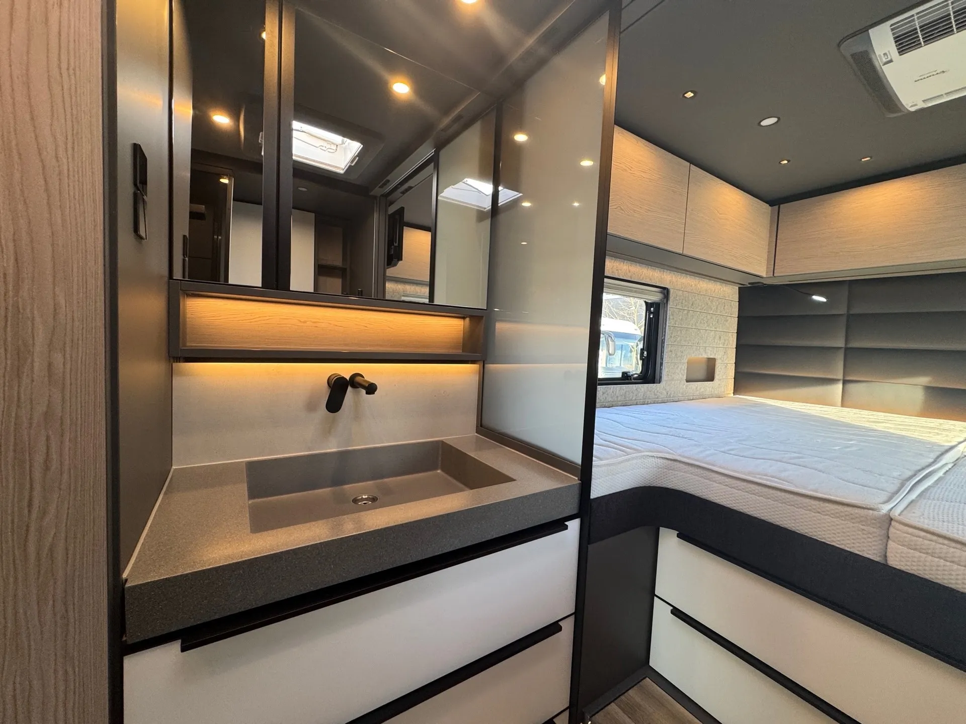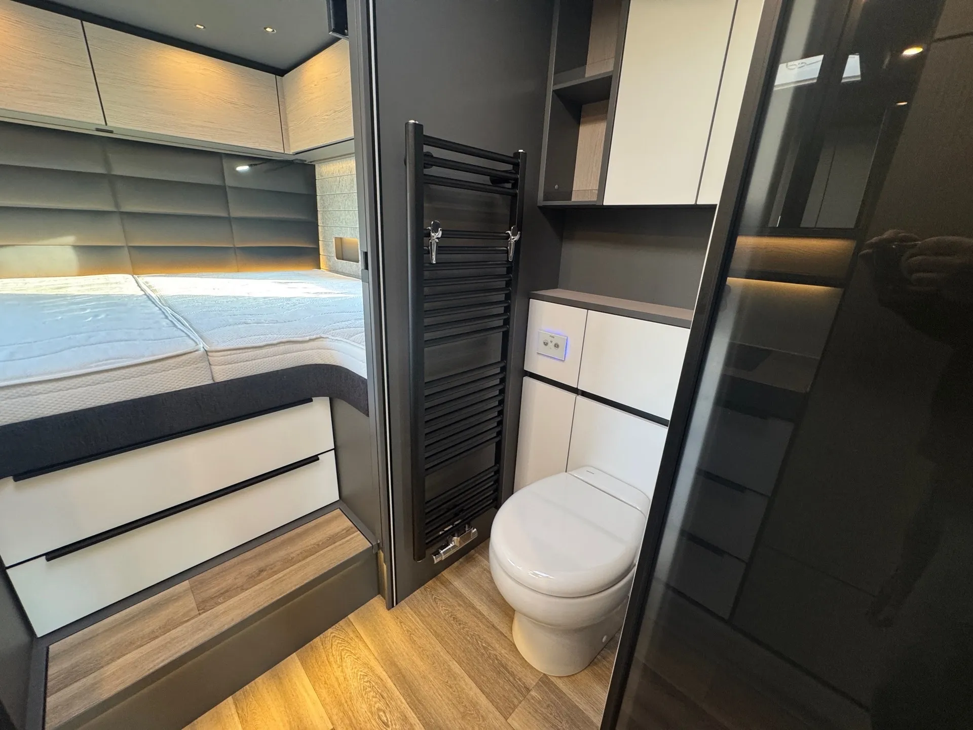 -Heckwandverkleidung im Schlafraum in Schwarz