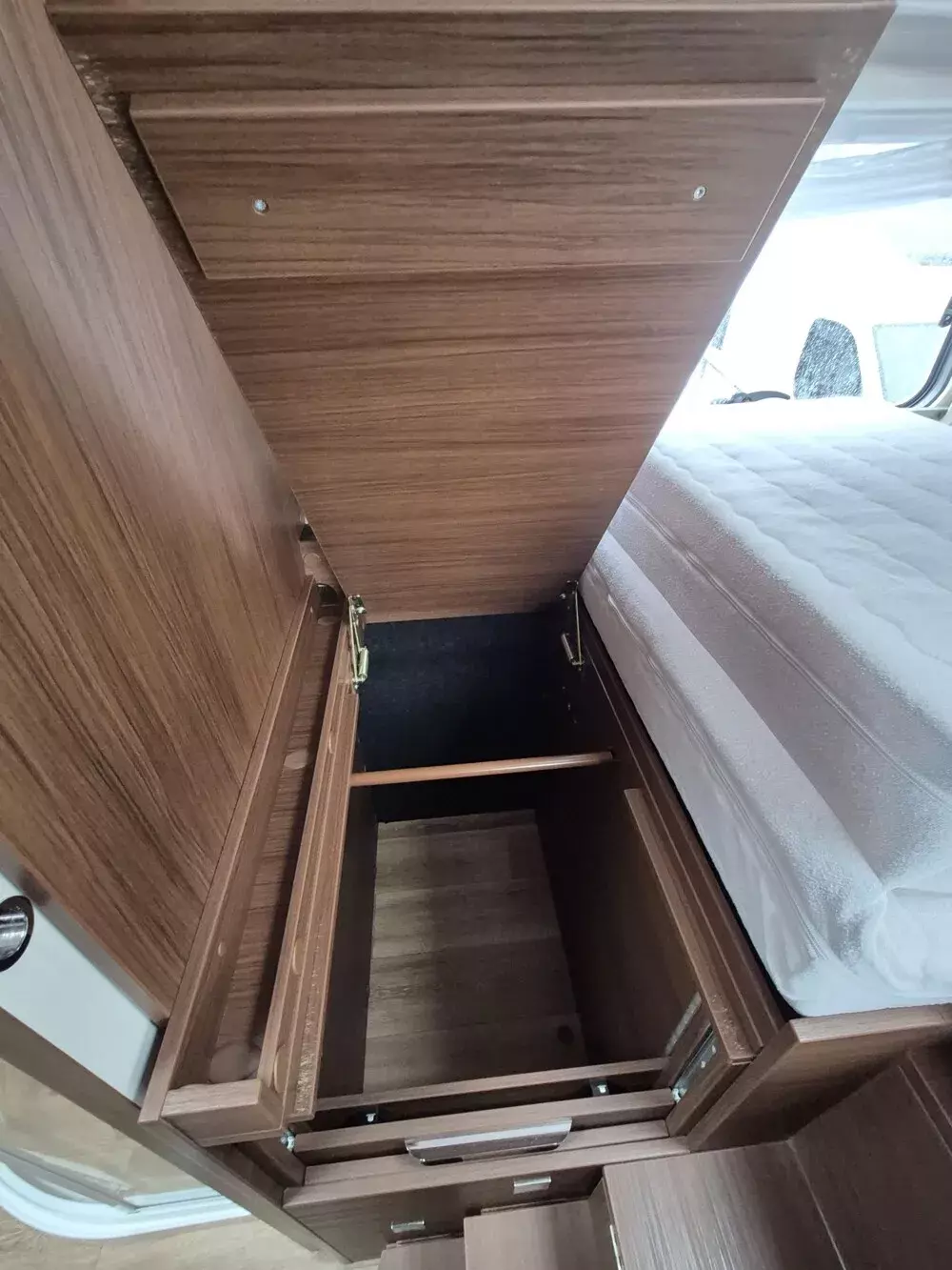 - CP - Comfort Paket (Panoramadachluke (Kippdach Seitz) statt Dachluke über Wohnraum, Verdunklungsplissee für Fahrer- und Beifahrerfenster, Tec-Tower mit 190 l + 35-l-Gefrierfach, inkl. Gasbackofen, Froli Schlafsystem inkl. Kaltschaummatratze)