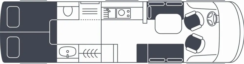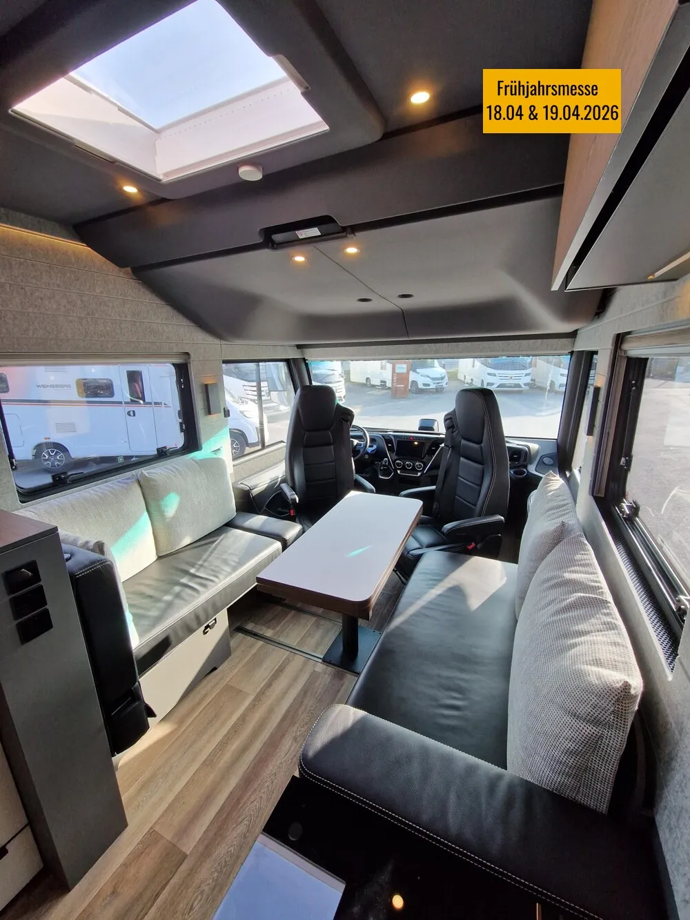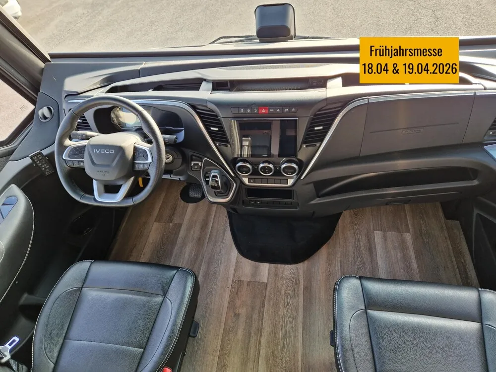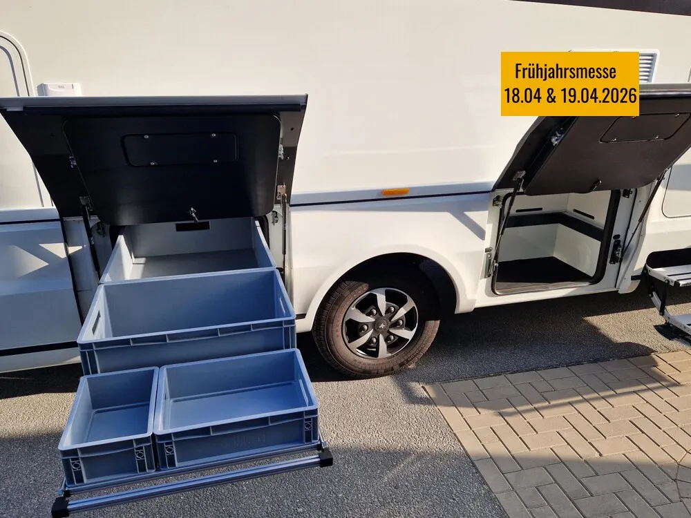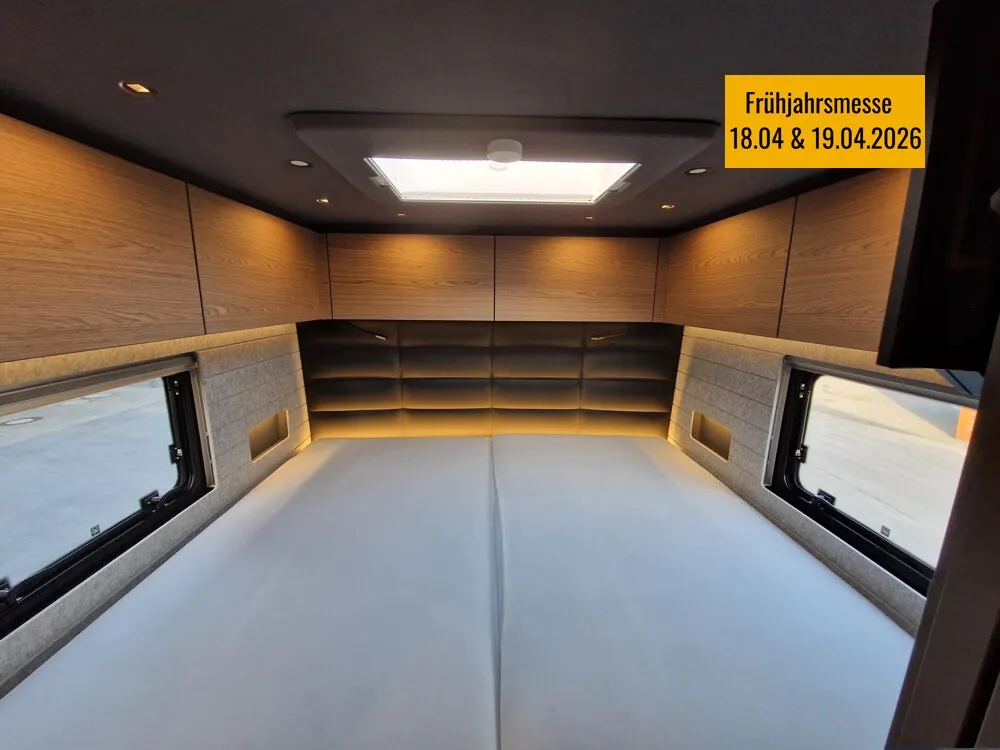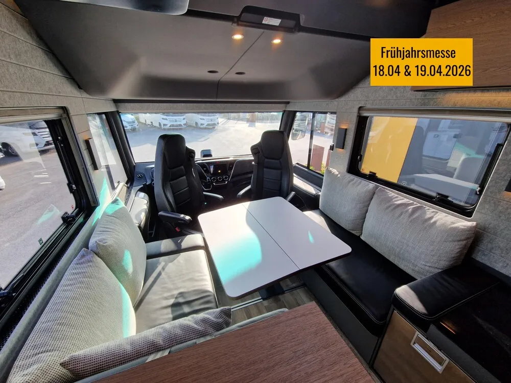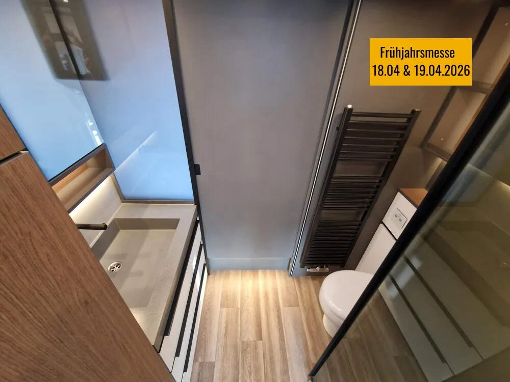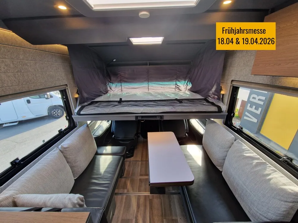 - LP - Liner Paket (Echtglasfenster, getönt, in schwarz lackiertem Alu-Rahmen mit thermischer Trennung, Warmwasser-Fußbodenheizung inkl. Fahrerhaus, Festtanktoilette mit 200 l Tank inkl. Keramikschüssel, SOG-Toilettenentlüftung)