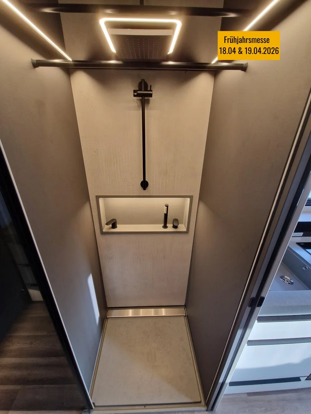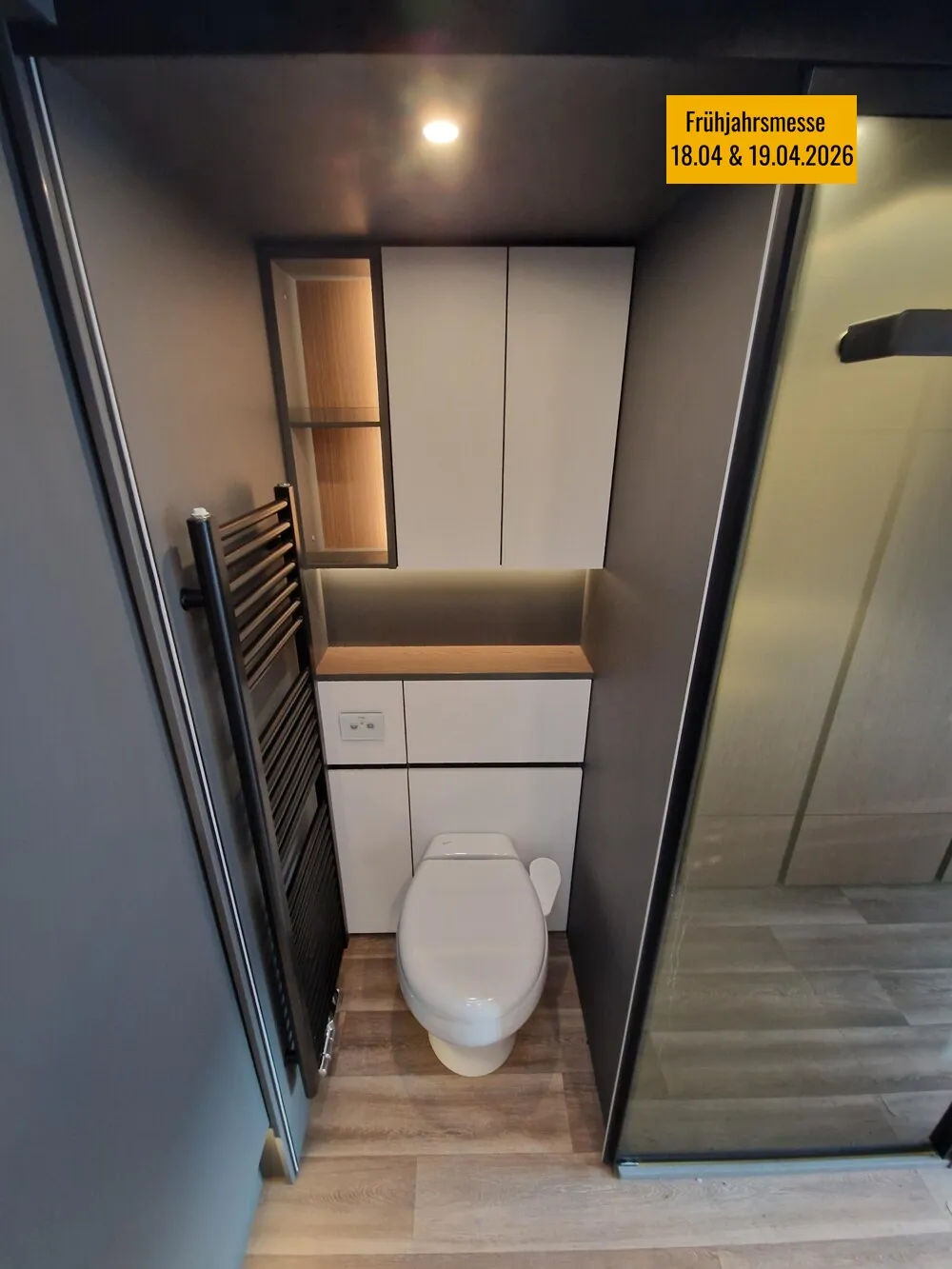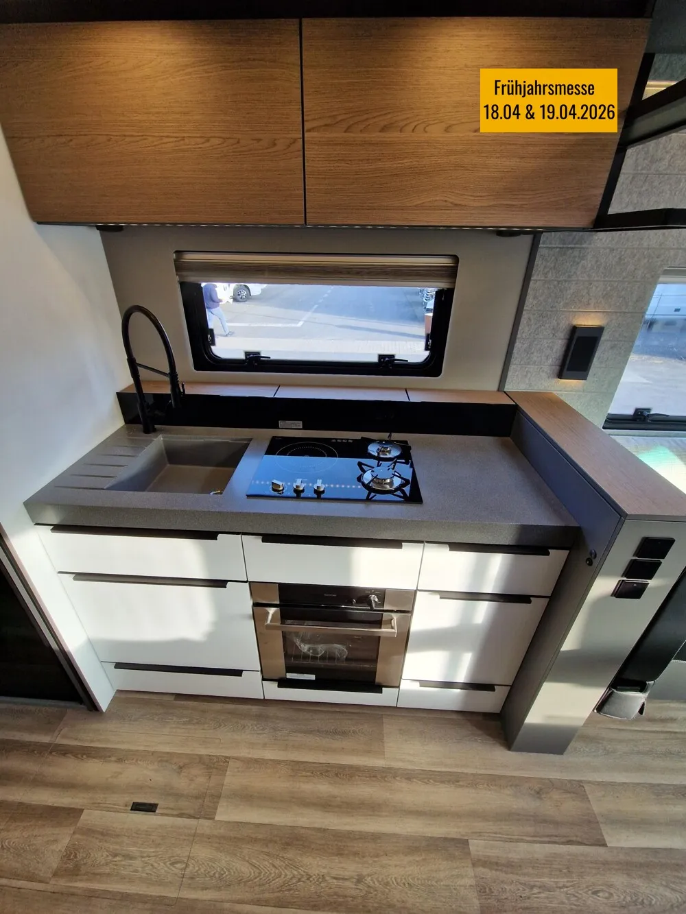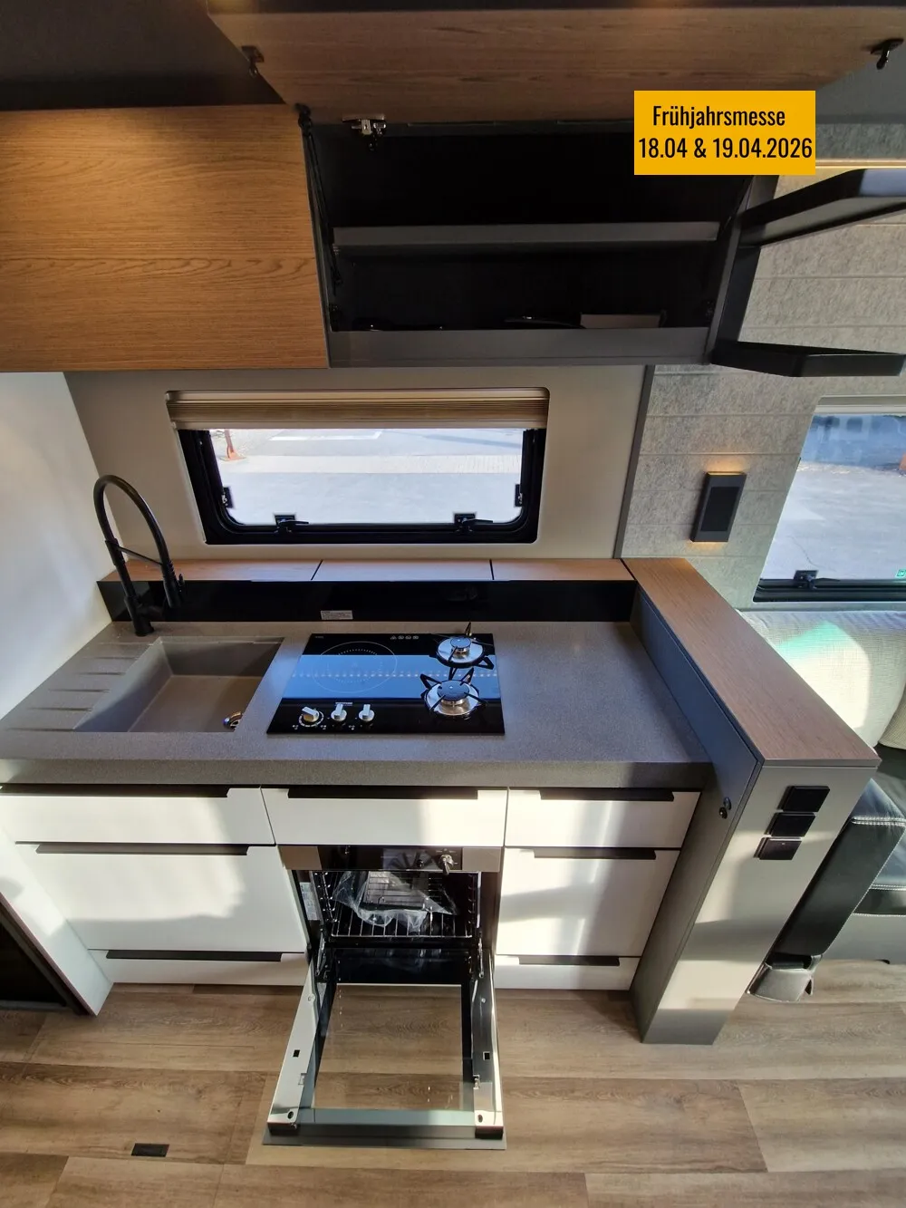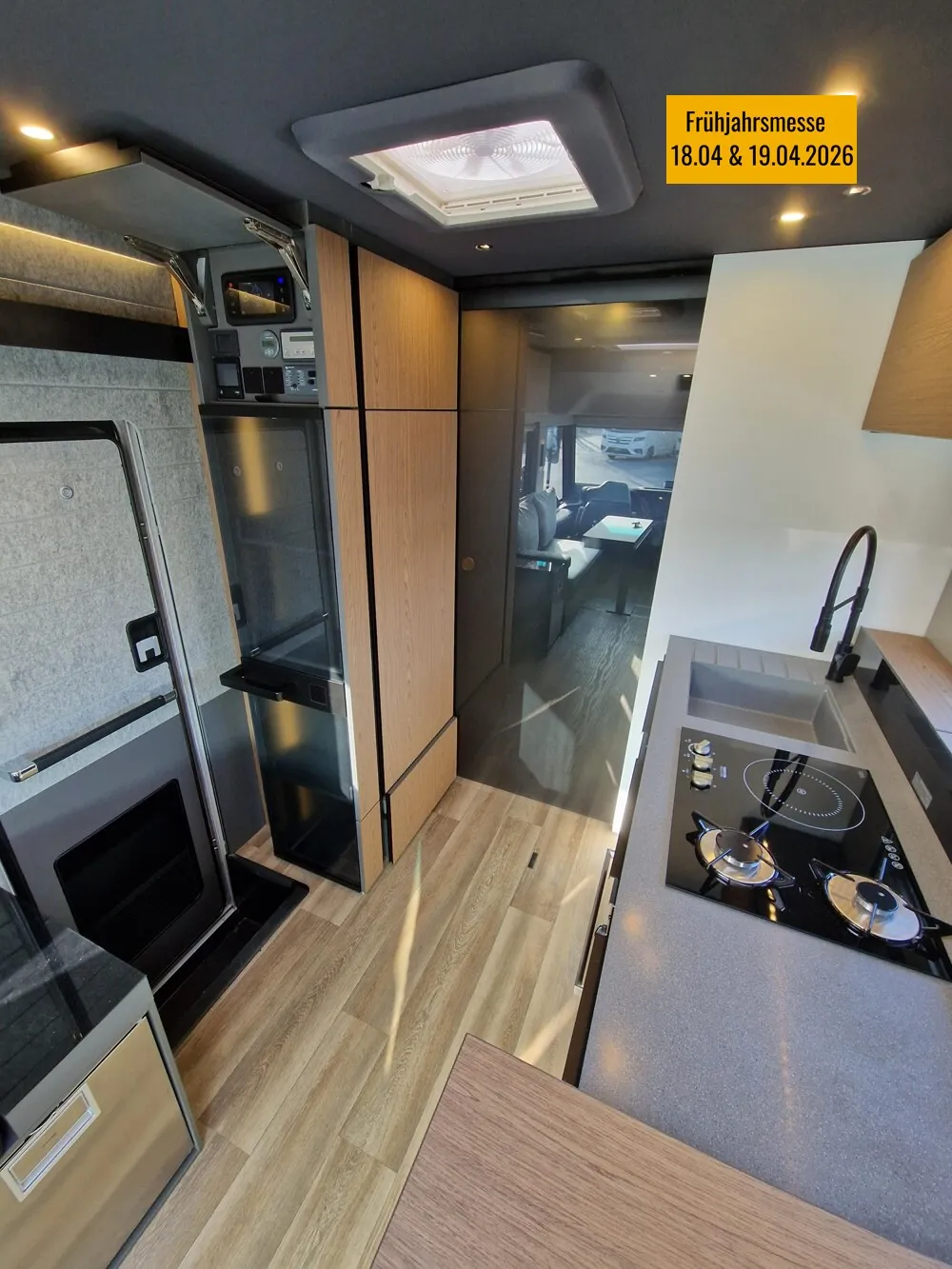 - LP - Liner Paket (Echtglasfenster, getönt, in schwarz lackiertem Alu-Rahmen mit thermischer Trennung, Warmwasser-Fußbodenheizung inkl. Fahrerhaus, Festtanktoilette mit 200 l Tank inkl. Keramikschüssel, SOG-Toilettenentlüftung)