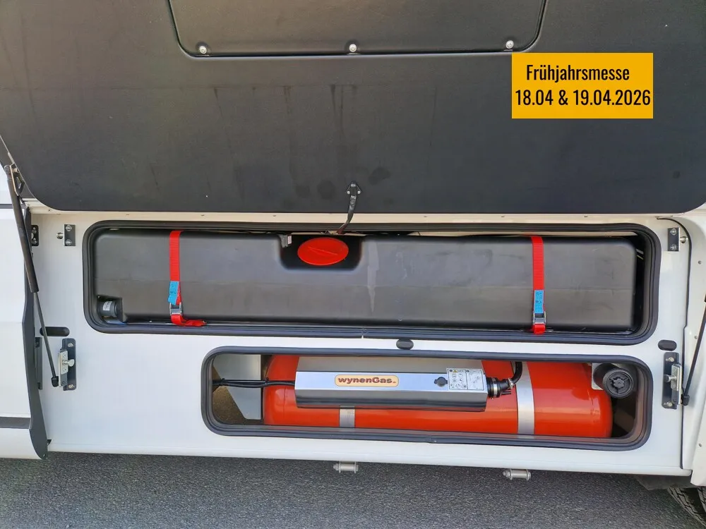 - Zentralverriegelung mit individueller Komfortsteuerung (Aufbautür, Garagen- und Außenklappen)