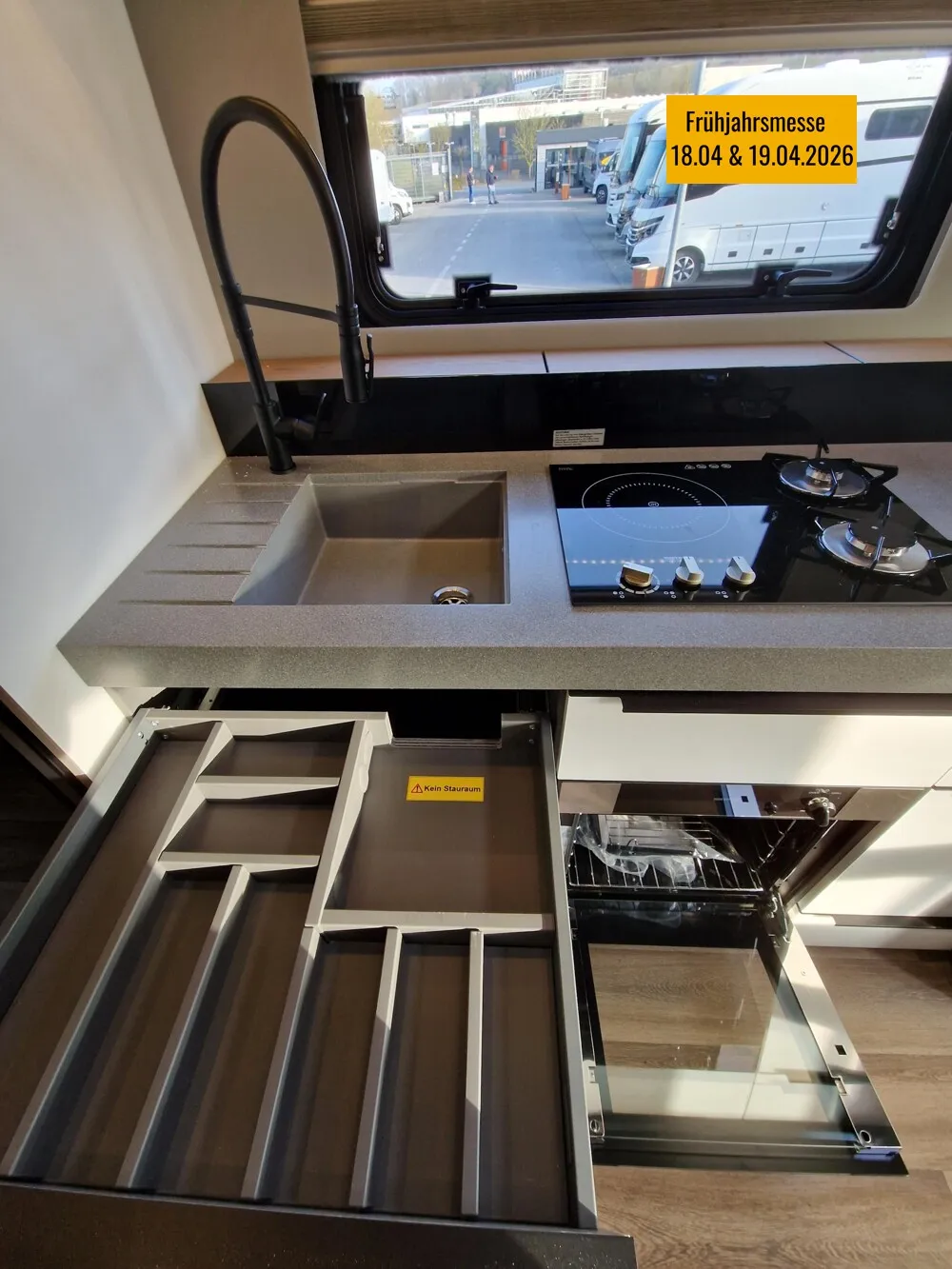 - Frischluftventilator statt Dachhaube über Küche (nicht möglich in Verbindung mit Dachklimaanlage Wohnraum)