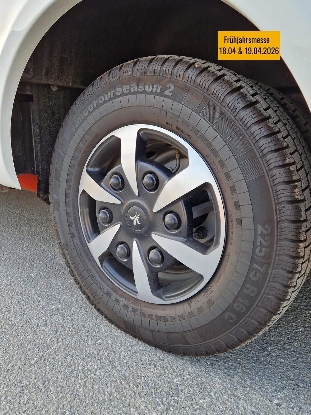 - Leichtmetallfelgen (2 Stück) an Vorderachse (spurverbreitert), Alublenden an Hinterachse (Reserverad mit Stahlfelge)