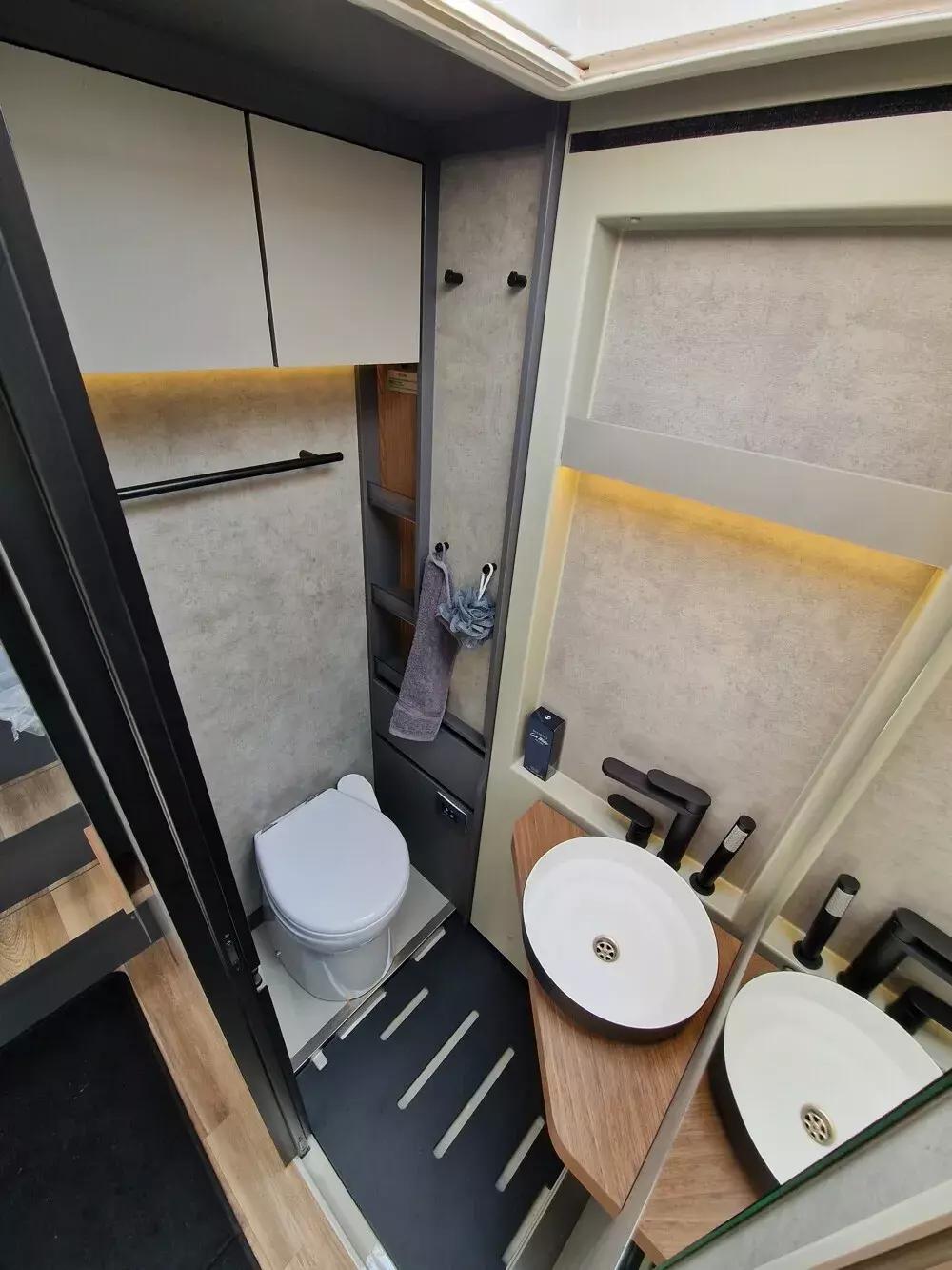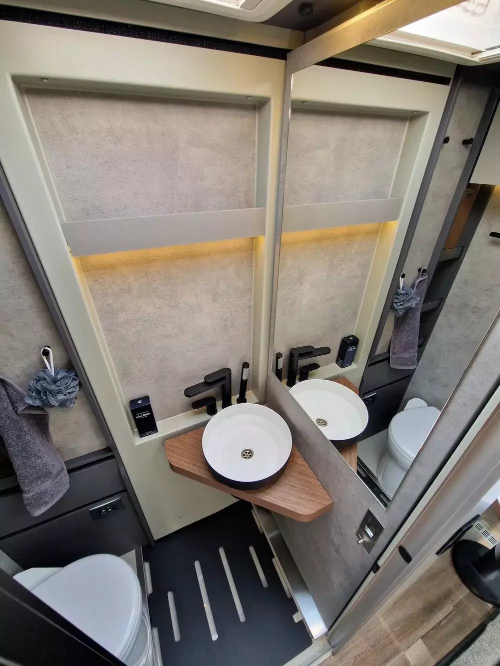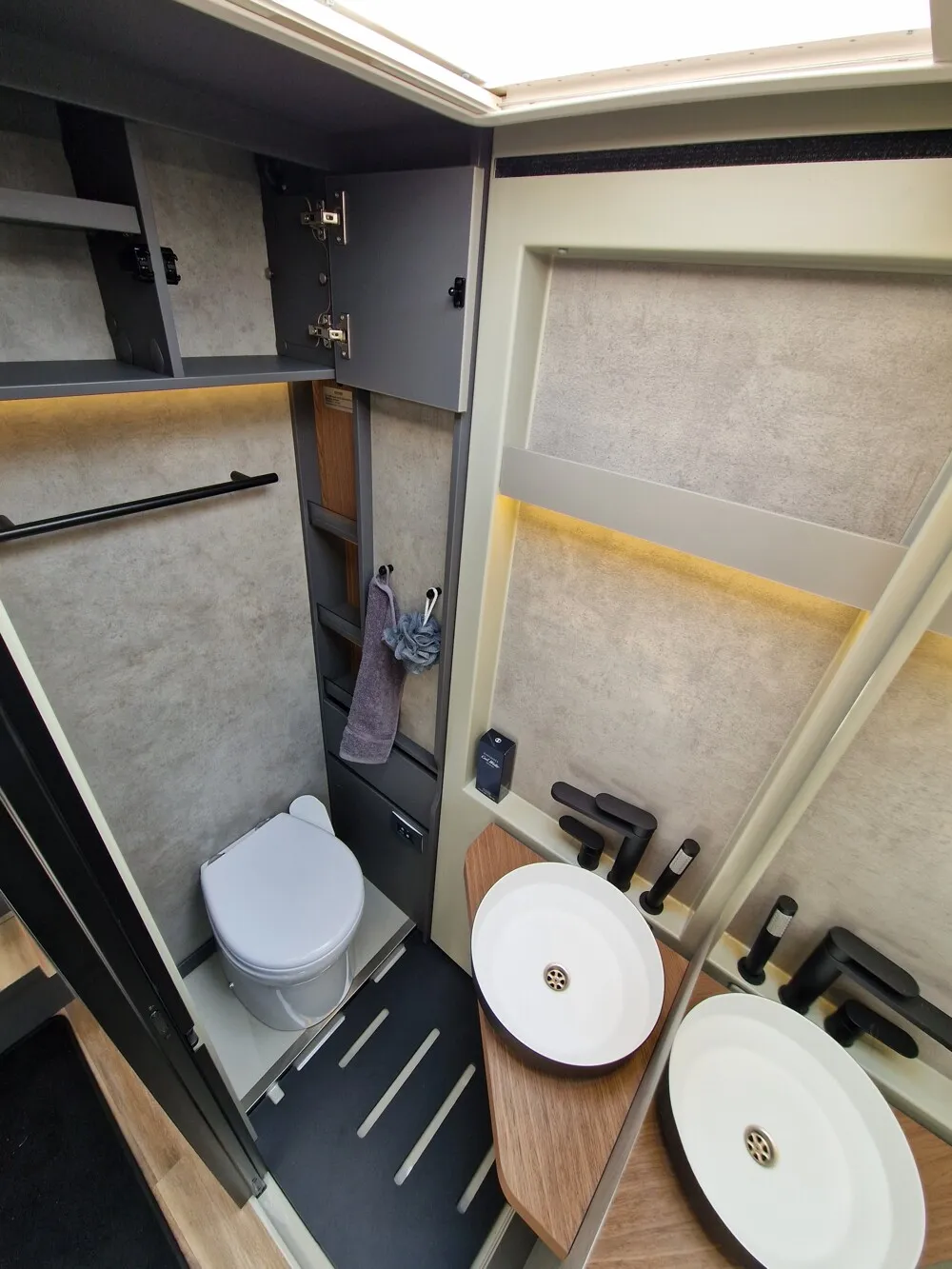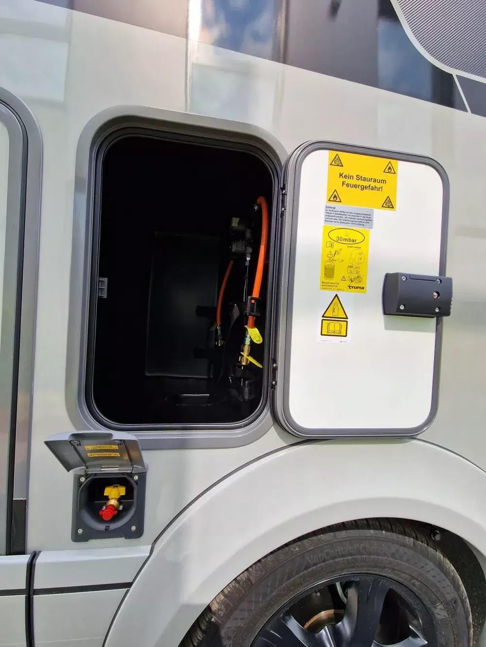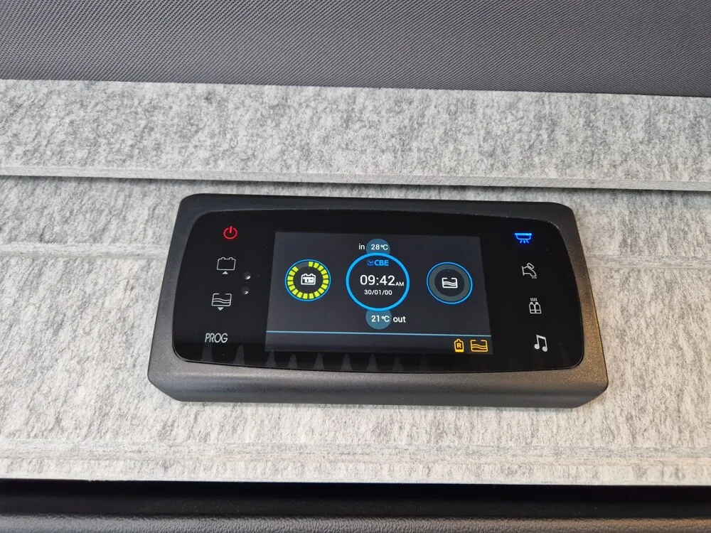 - WP - Winter Paket (Isolierdoppelverglasung für Fahrer- und Beifahrerfenster, Warmwasserheizung mit thermostatischer Regelung, Heizpatrone und Touchscreen-Bedienpanel, mit separatem Heizkreislauf im Schlafraum, Motorwärmetauscher (nutzt das Kühlwasser des Motors zur Wohnraumbeheizung, nur in Verbindung mit Code V5028014, Warmwasserheizung))