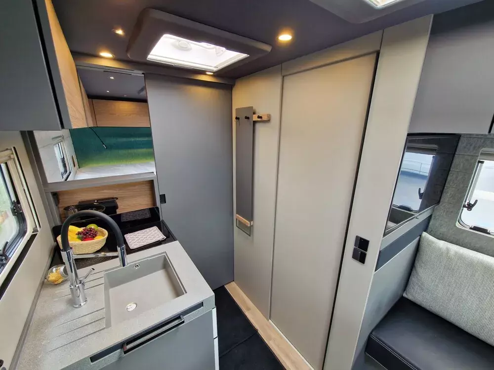 - Küchenfronten in White Planked (Matt weiß), beim 7.3 F inkl. Heckbettschubladen