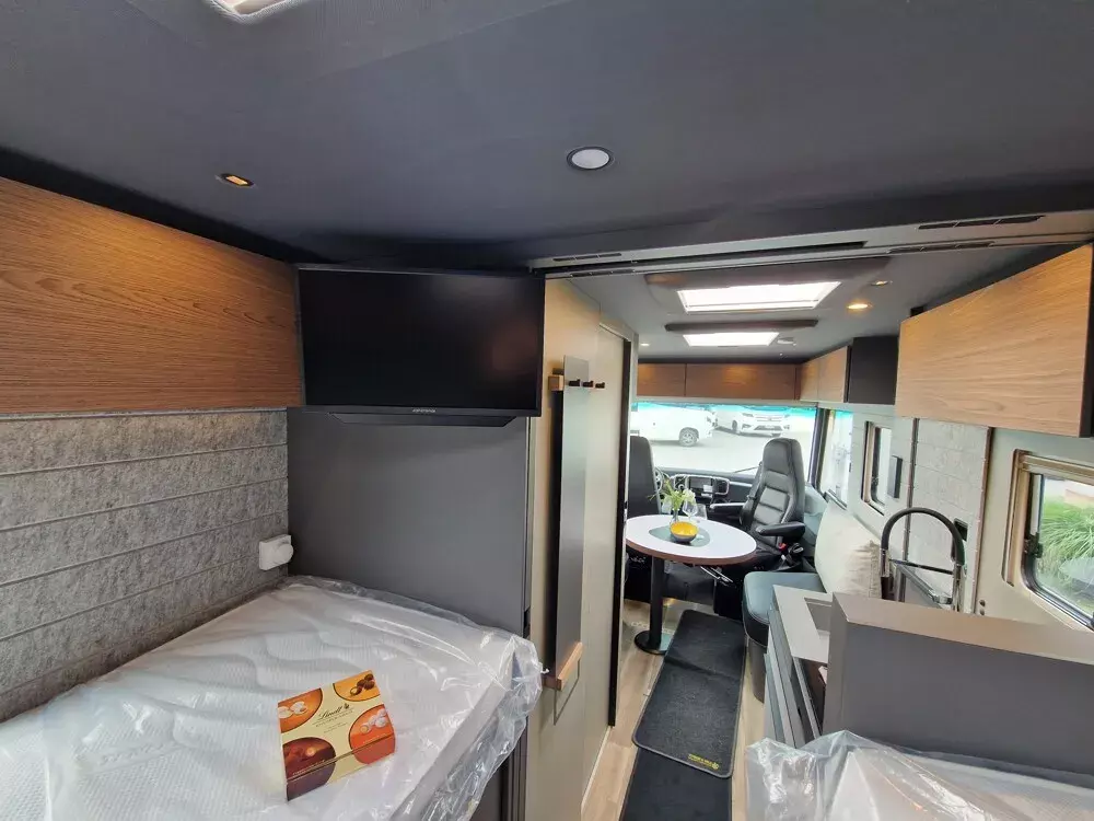 - CP - Comfort Paket (Isolationsplissee für die Windschutzscheibe, elektrisch verstellbar, auch als Sonnenblende und Sichtschutz verwendbar, Panoramadachluke (Medi-Heki) über Wohnraum, Akustikverkleidung an den Seitenwänden, Fliegenschutz-Schiebetür für Aufbautür, Intuitives Beleuchtungskonzept (Bewegungs- und Lichtsensoren für Nachtflurbeleuchtung und Variobad sowie automatische Beleuchtung für Wohnraum, Heckgarage und Versorgungsfach über Tür- und Klappenkontakten), Komfortmatratze inkl. Froli-Schlafsystem für Heckbett(en), Komfortsitze für Fahrer und Beifahrer (Aguti), neigungs- und höhenverstellbar, in Polsterstoff bezogen (anstelle von Original-Fiat-Sitzen))