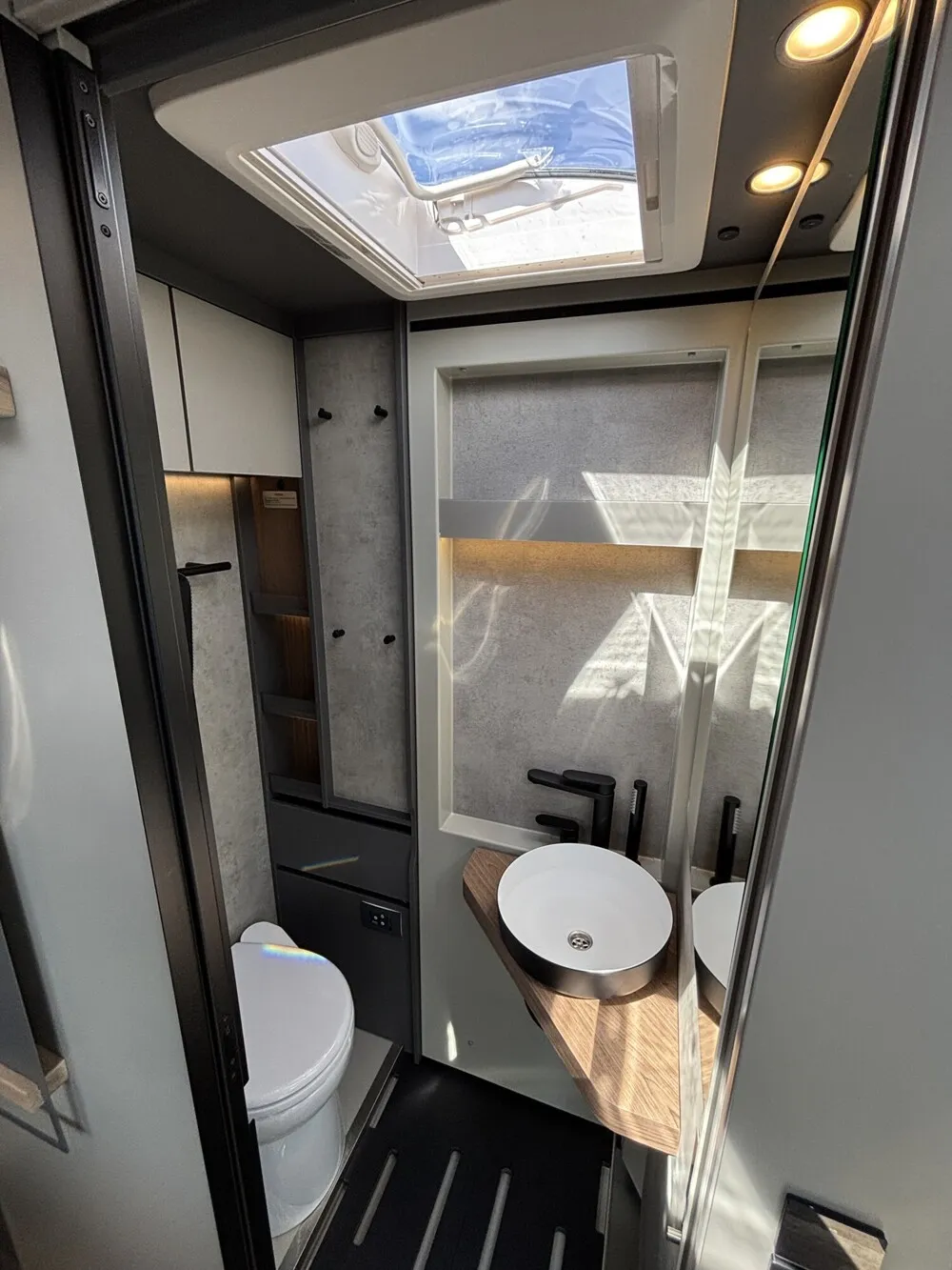 - WP - Winter Paket (Isolierdoppelverglasung für Fahrer- und Beifahrerfenster, Warmwasserheizung mit thermostatischer Regelung, Heizpatrone und Touchscreen-Bedienpanel, mit separatem Heizkreislauf im Schlafraum, Motorwärmetauscher (nutzt das Kühlwasser des Motors zur Wohnraumbeheizung, nur in Verbindung mit Code V5028014, Warmwasserheizung))