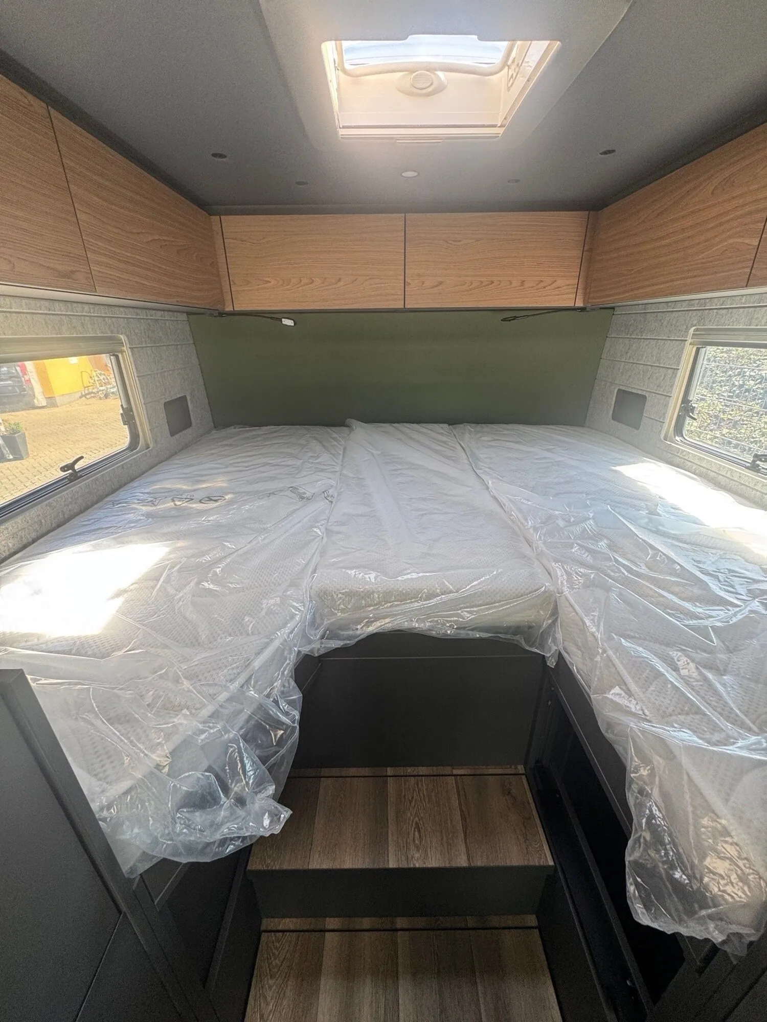 - Heckwandverkleidung im Schlafraum in Olivgrün