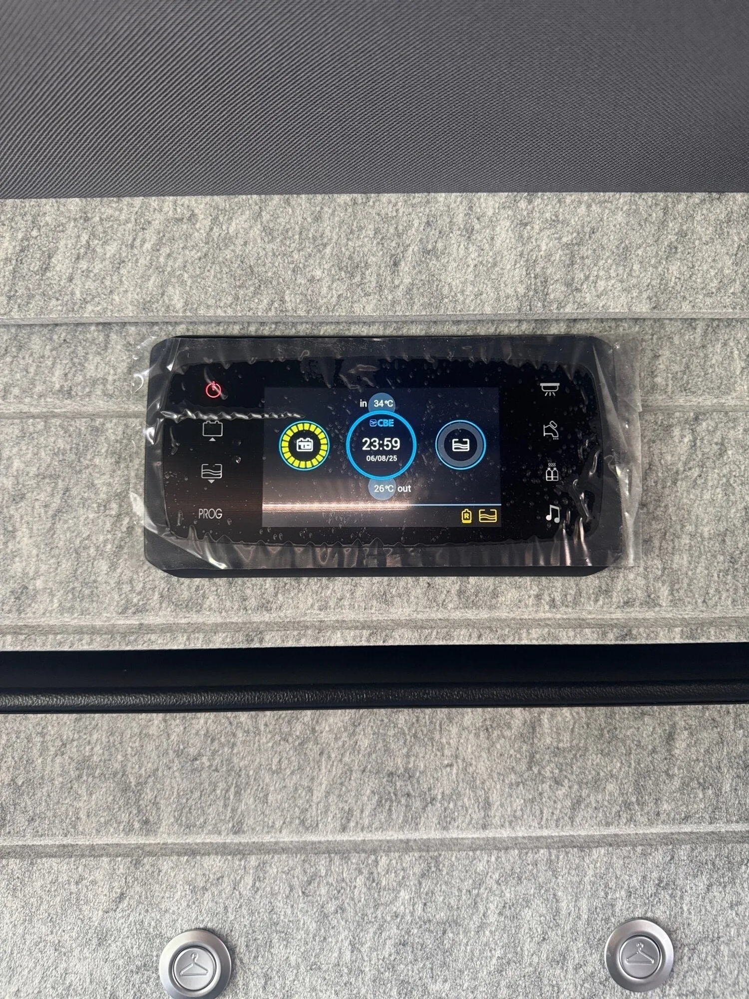 - Erweiterungssatz für Warmwasserheizung (Fahrerhauslüftung mit Warmwasserheizung verbunden, bedienbar über extra Touchscreen-Panel, nur in Verbindung mit Motorwärmetauscher, Code V5062010 und Warmwasserheizung, Code V5028014)