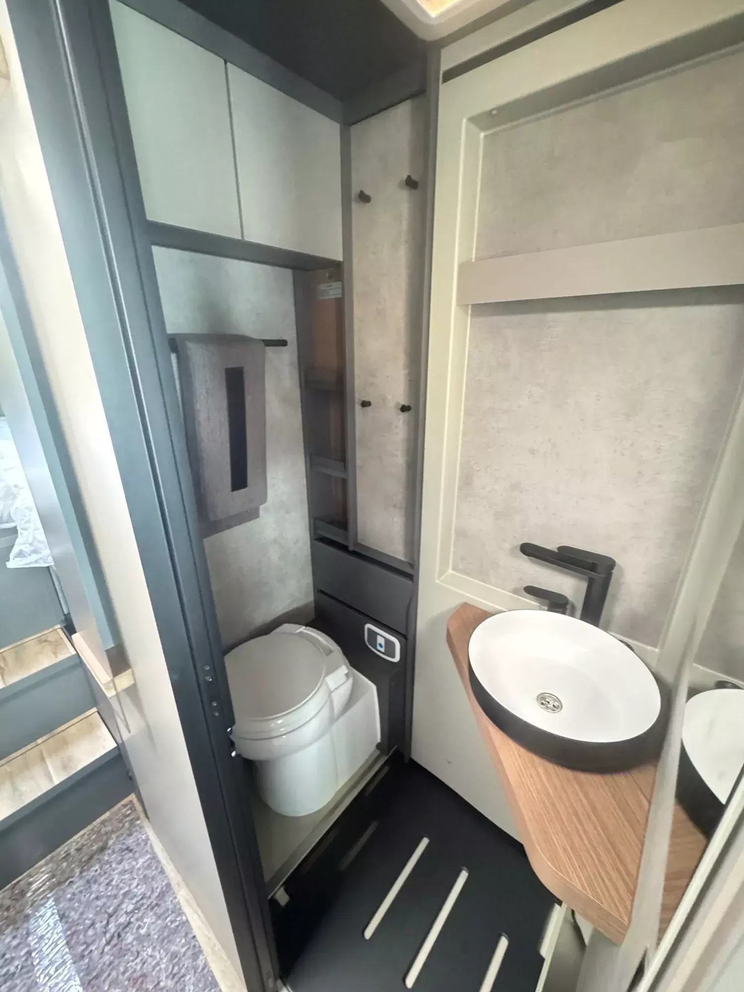 - Service-Kamera bei Entsorgungsfach über Ablaufrohr der optionalen Festtanktoilette mit Anzeige über Doppel-DIN-Monitor im Armaturenbrett (nur in Verbindung mit Navigationsgerät, Code V50400129)