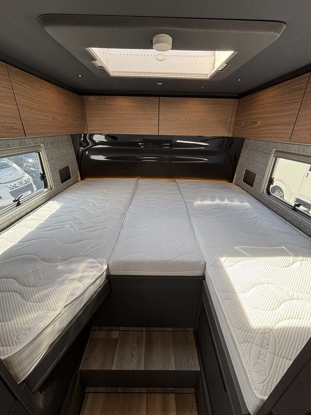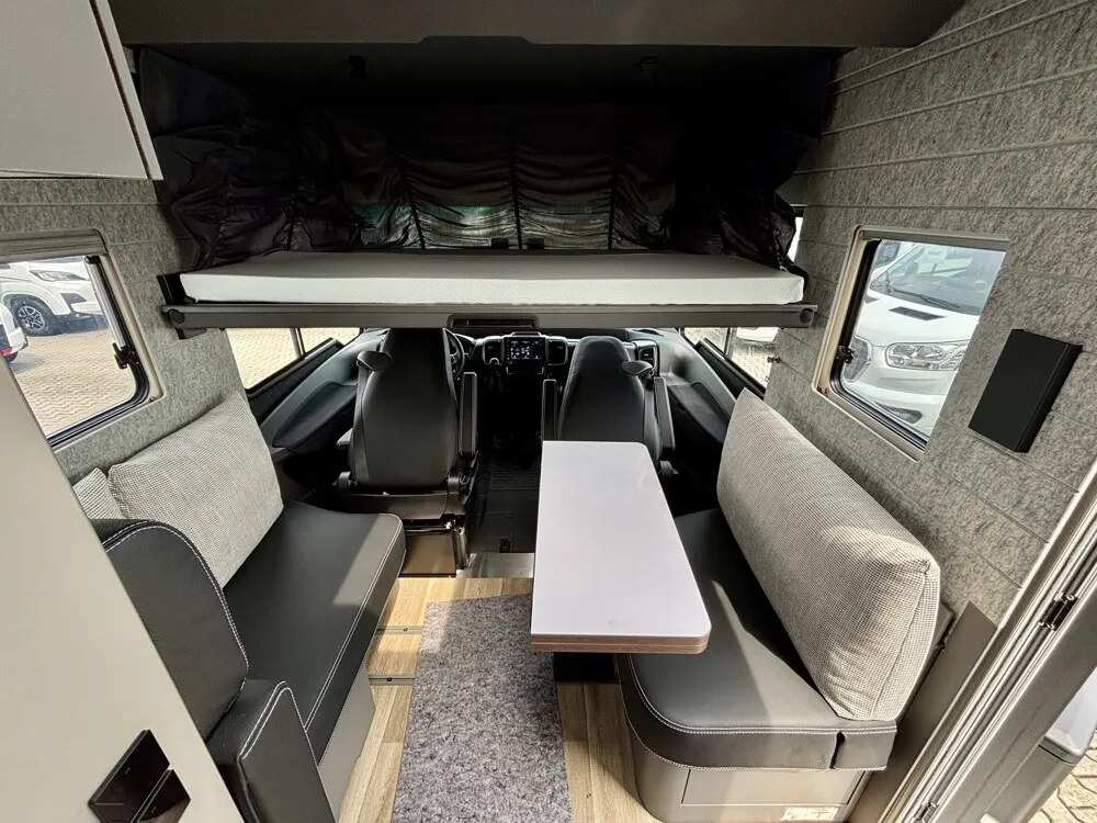 - CP - Comfort Paket (Isolationsplissee für die Windschutzscheibe, elektrisch verstellbar, auch als Sonnenblende und Sichtschutz verwendbar, Panoramadachluke (Medi-Heki) über Wohnraum, Akustikverkleidung an den Seitenwänden, Fliegenschutz-Schiebetür für Aufbautür, Intuitives Beleuchtungskonzept (Bewegungs- und Lichtsensoren für Nachtflurbeleuchtung und Variobad sowie automatische Beleuchtung für Wohnraum, Heckgarage und Versorgungsfach über Tür- und Klappenkontakten), Komfortmatratze inkl. Froli-Schlafsystem für Heckbett(en), Komfortsitze für Fahrer und Beifahrer (Aguti), neigungs- und höhenverstellbar, in Polsterstoff bezogen (anstelle von Original-Fiat-Sitzen))