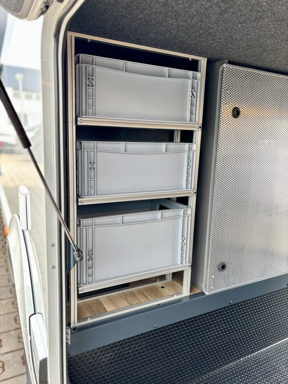 - Stauraumkiste ausziehbar auf Beifahrerseite