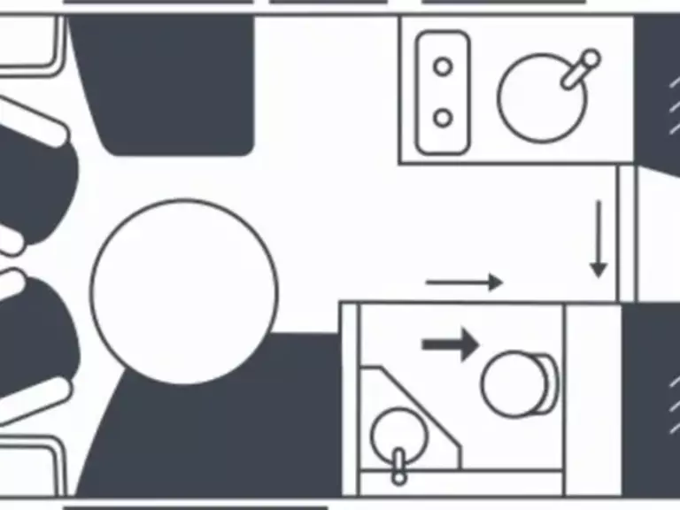 - Service-Kamera bei Entsorgungsfach über Ablaufrohr der optionalen Festtanktoilette mit Anzeige über Doppel-DIN-Monitor im Armaturenbrett (nur in Verbindung mit Navigationsgerät, Code V50400129)