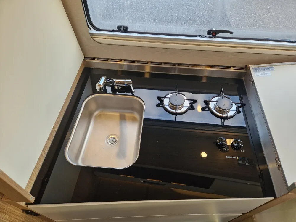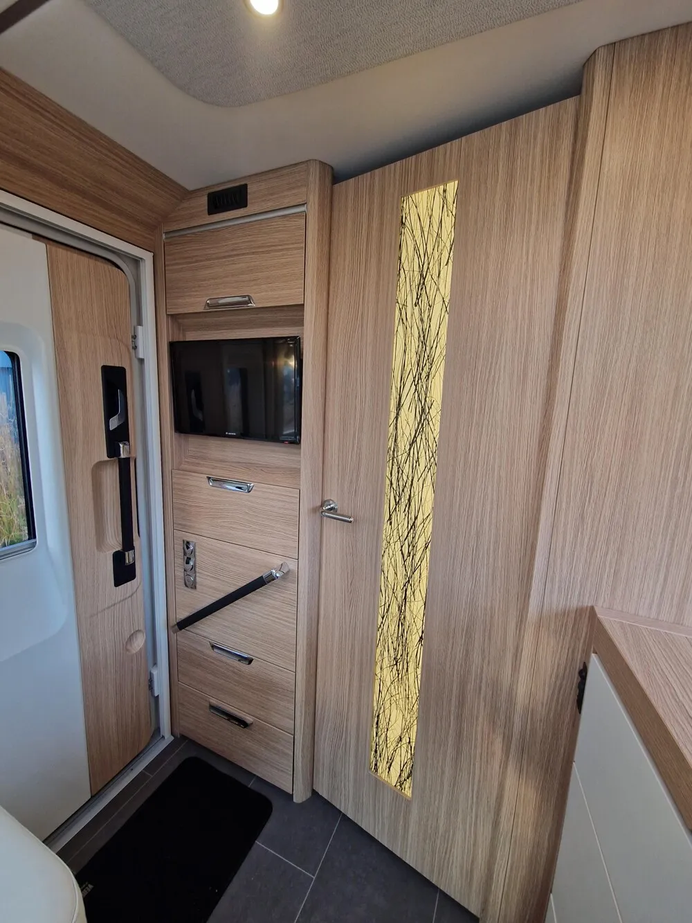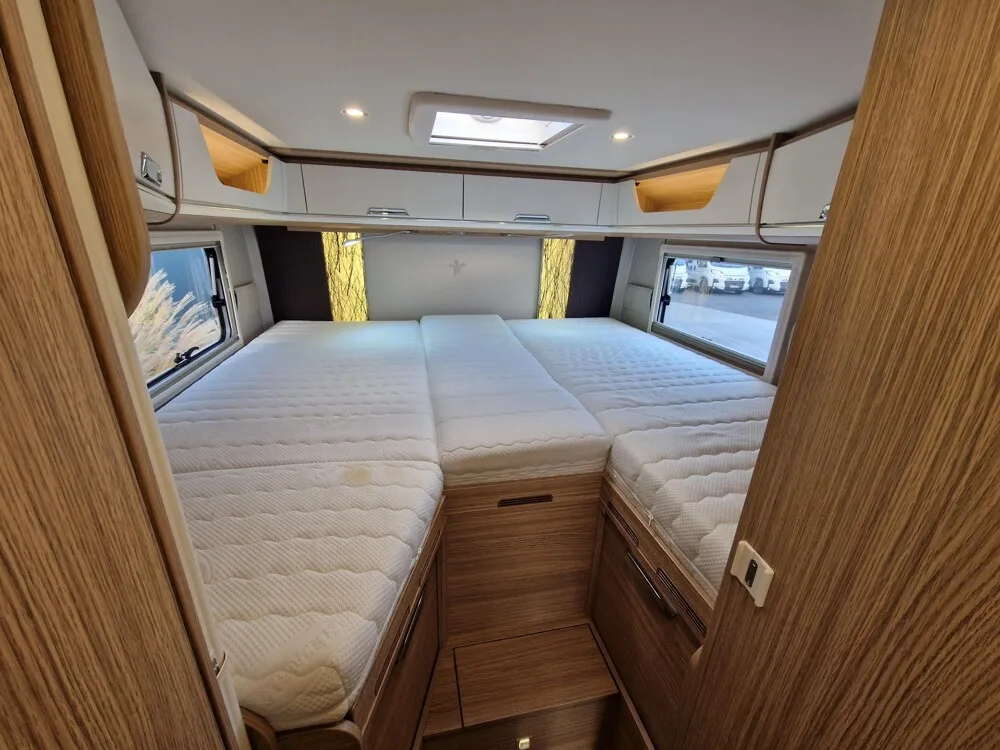 - Comfort Paket (Komfortsitze Fahrer und Beifahrer (Aguti), neigungs- und höhenverstellbar, in Polsterstoff bezogen (anstelle von Original-Fiat-Sitzen), Verdunkelungsplissee für Fahrerhaus Front- und Seitenscheiben, Komfortmatratze inkl. Froli-Schlafsystem, Aufbaufenster mit Einhandbedienung, Fliegenschutz für Eingangstür)