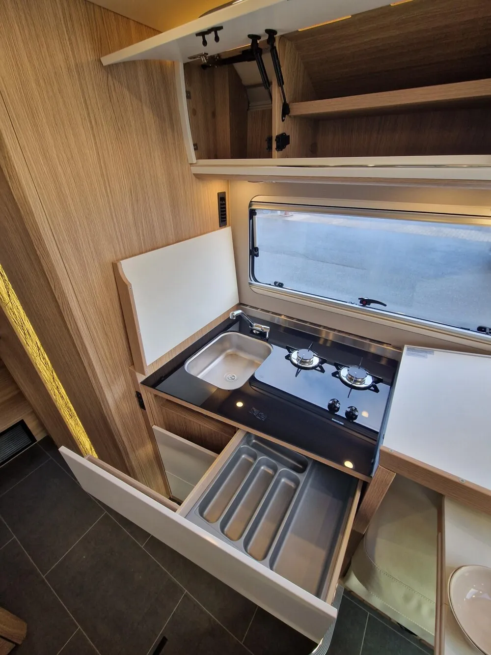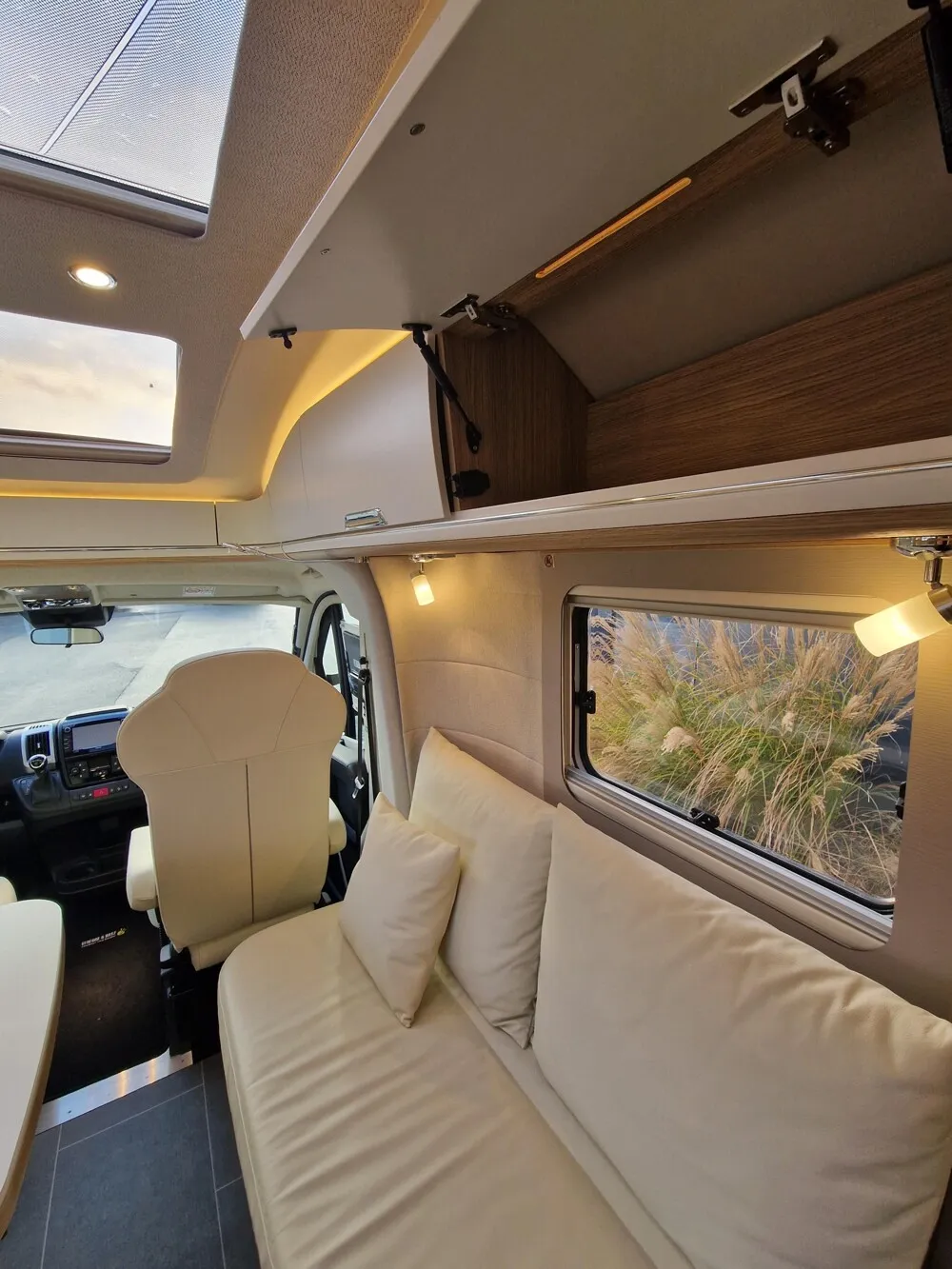 - Panorama Schiebedach in elektrischer Ausführung über Wohnraum (vom Fahrerhaus aus bedienbar)