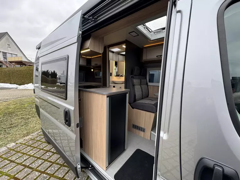 - Plus-Ausstattung (Klimaautomatik, Captain Chair drehbar, Induktives Laden, Lackierte Stoßfänger/Radlaufverbreiterungen, Alufelgen, Lederlenkrad, Radiovorbereitung inkl. Lautsprecher, DAB-Antenne, Cup-Holder, Digitales Cockpit, Nebelscheinwerfer, Techno Trim Amaturenbrett, Lenkrad mit Bedienelementen, Spiegel el. verstell- und beheizbar, USB Ladeanschluss, Verdunkelung Fahrerhaus, Trittstufe, Verstärkte Lichtmaschine, Beifahrerairbag, 90l Tank, Ladebooster, Seitenwindassistent, Allwetterreifen, Traction+)
