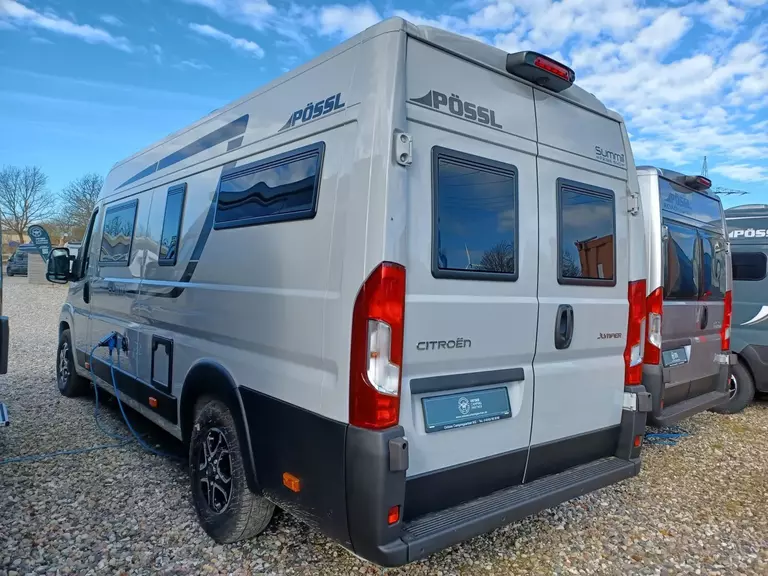 - Pössl Premium-Hybrid Ausstattung 2026 (Klimaautomatik, Captain Chair drehbar, Induktives Laden, Lackierte Stoßfänger/Radlaufverbreiterungen, Alufelgen, Lederlenkrad, Radiovorbereitung inkl. Lautsprecher, DAB-Antenne, Cup-Holder, Digitales Cockpit, Nebelscheinwerfer, Techno Trim Amaturenbrett, Lenkrad mit Bedienelementen, Spiegel elektrisch verstell- und beheizbar, USB Ladeanschluss, Verdunkelung Fahrerhaus (nicht Concorde/Roadcar), Trittstufe, Verstärkte Lichtmaschine, Beifahrerairbag, 90l Tank, Ladebooster, Standheizung Diesel (Aufbau), Seitenwindassistent, Allwetterreifen, Traction+, Paket Safety (Notbremsassistent, Aufmerksamkeitsassistent, Verkehrsschilderkennung, Intelligenter Geschwindigkeitsassistent, Adaptive Geschwindigkeitsregelanlage), Paket Vision (360 Grad Parksensoren, Toter Winkel Assistent und hintere Querverkehrserkennung, 10 Zoll Infotainment mit Navigation, Touchscreen, DAB, Bluetooth, Elektrisch anklappbare Außenspiegel, Digitaler Außenspiegel, Rückfahrkamera, Regen- und Lichtsensor, Spurhalteassistent und Spurhaltezentrierung, ESC/ABS/Hill-Decent-Control))