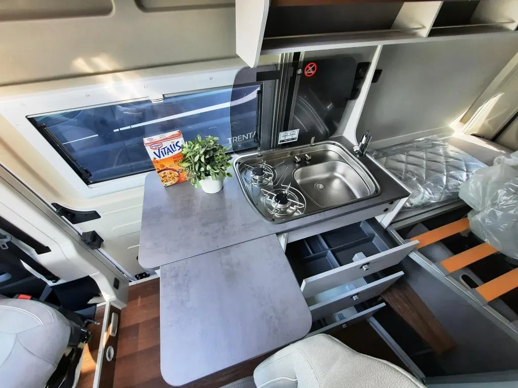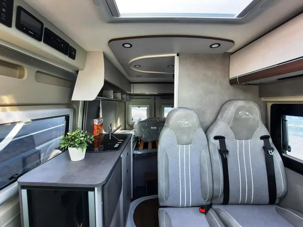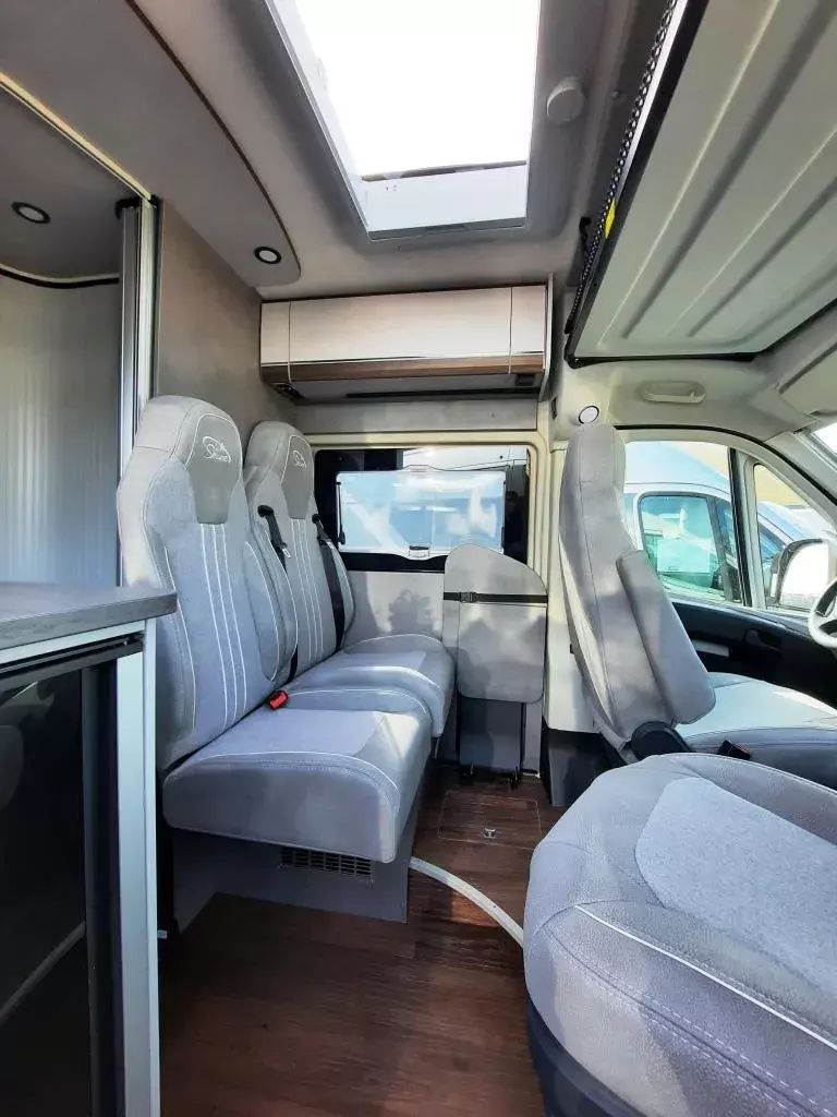 Citroen 140 PS, 4-Zylinder Turbodiesel, Euro 6d, Rußpartikelfilter, Fahrerairbag, Elektronische Wegfahrsperre, Zentralverriegelung mit Funkfernbedienung, Höhenverstellbare Scheinwerfer, elektrische Fensterheber Fahrer- und Beifahrerseite, Fahrerhausinnenbeleuchtung, Klimaanlage manuell, Beifahrerairbag, Innovatives MultiRoof über dem Fahrerhaus: großzügiger, offener Innenraum und Stauraum bei Bedarf , Atmosphärische Beleuchtung im ganzen Wohnraum, Hochwertige Lichtschiene in Anthrazit mit passenden Spots und USB-Steckdosen, Grifflose Bicolor-Klappen mit durchlaufendem LED-Lichtstreifen, Einladende Sitzgruppe mit Easy Move Tisch inkl. Travelfunktion, Einzelsitz anstatt Sitzbank inkl. Erweiterungsoption auf 4 - 5 Sitze u .v.m.*