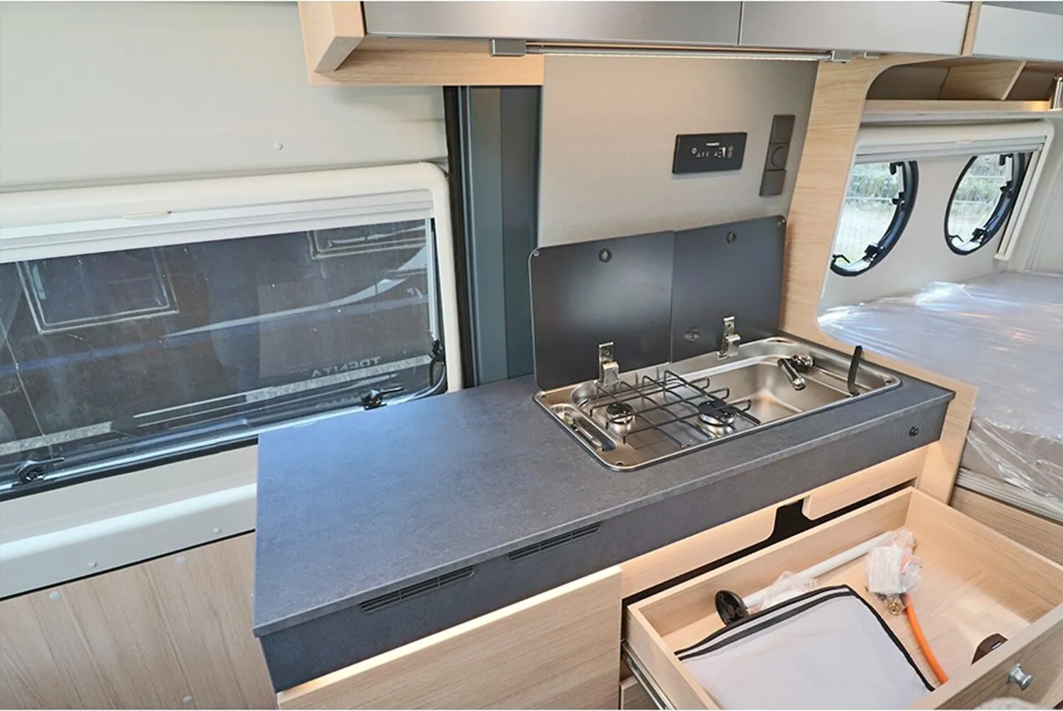 - ALL-IN-Paket Fiat (DAB Antenne im Außenspiegel, USB Ladeanschluss, 2. Funkschlüssel, Ladebooster, Bedientasten für Radio am Lenkrad, Captain Chair drehbar, Außenspiegel elektr. verstell- und beheizbar, 90 Liter-Tank, Getränkehalterung + Halterung für Smartphone/Tablet, Radiovorbereitung mit Lautsprechern (DAB), Armaturenbrett mit Alu-Applikationen, Faltverdunkelung Fahrerhaus (außer Concorde Compact))