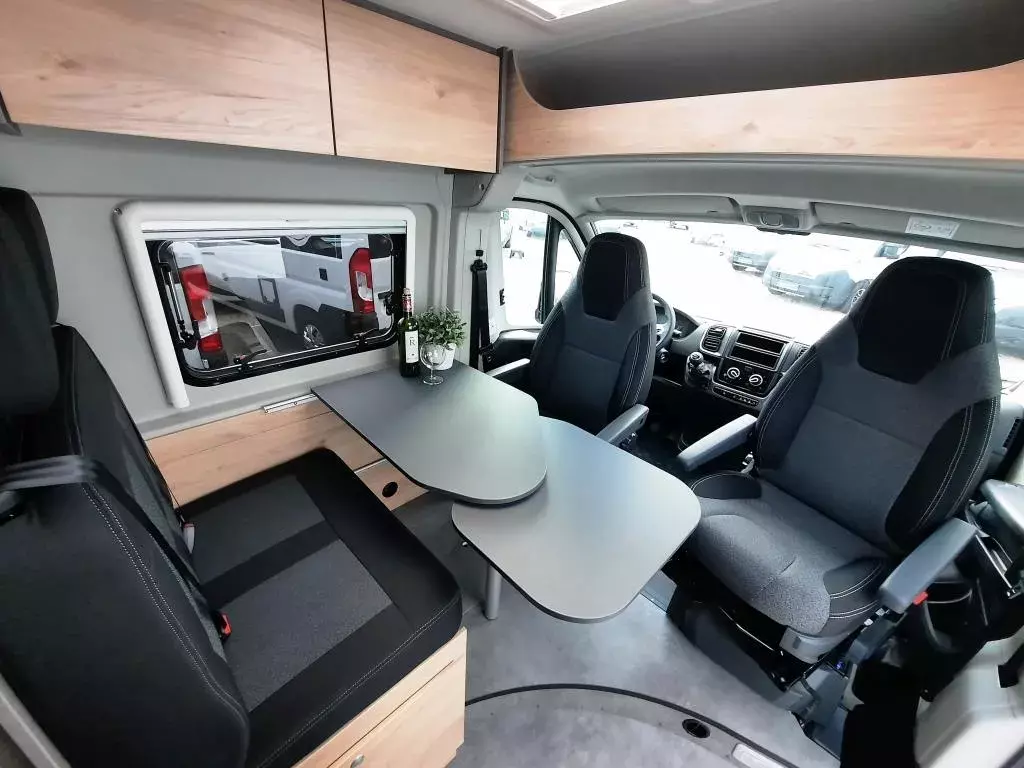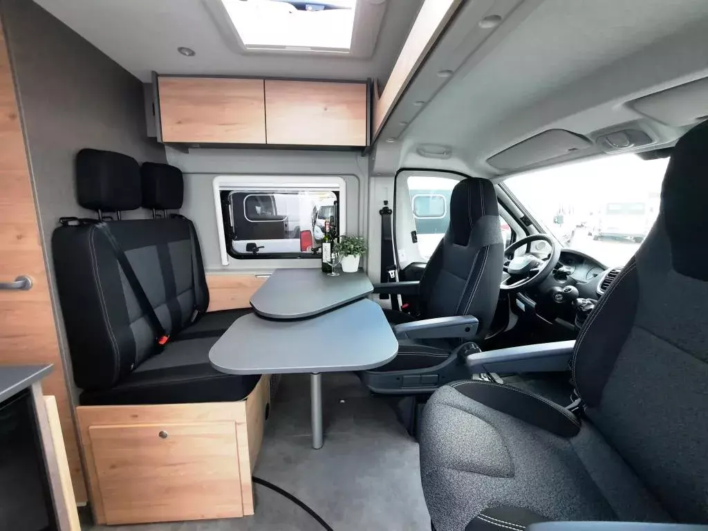Fiat Ducato 140 PS, Allwetterreifen M+S* Camping Snowflake, Fahrerhausklimaanalag, Dieseltank 90 l, Scheinwerferrahmen schwarz, Captain Chair und Traction+, Rahmenfenster, Fahrer- & Beifahrer, Podest der Sitzgruppe mit integriertem Staufach, Kleiderschrank im Bettkasten links, 2-Flamm-Kocher- und Spülen-Kombination mit Elektrozündung, Geräumige Schubkasten mit Softclose und Pushlocks im Küchenblock, Kompressorkühlschrank 84 l inkl. Frosterfach 6,1 l, Combi 4 Warmluft-/Warmwasserheizung, Wassertank 100 l, Abwassertank 90 l, Stauraum für Gasflaschen mit je 11 kg Füllgewicht: 2 Stück, Isofix für einen Sitzplatz, 10 Jahre Dichtigkeitsgarantie u.v.m.*