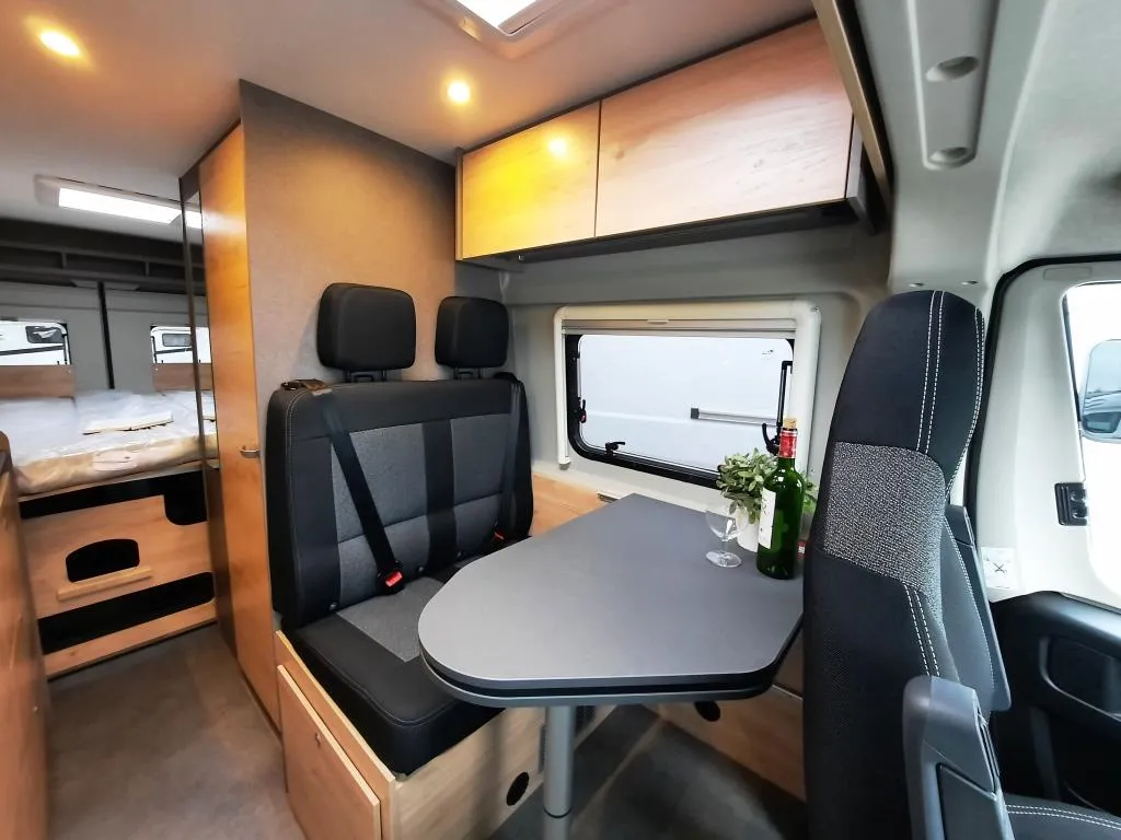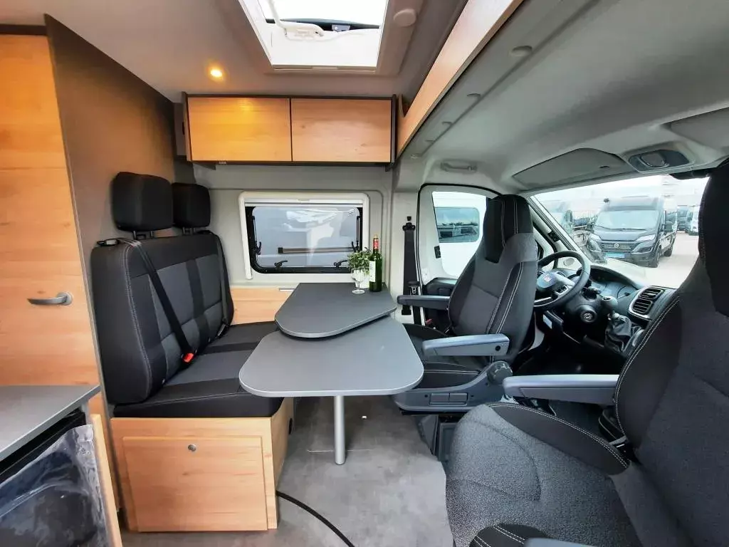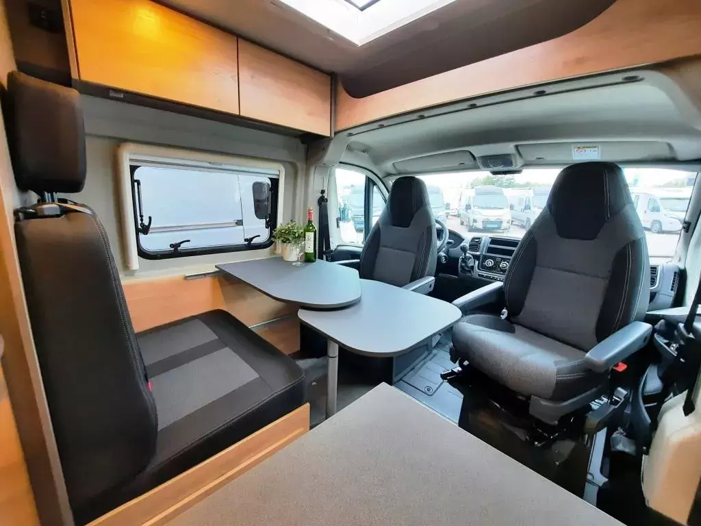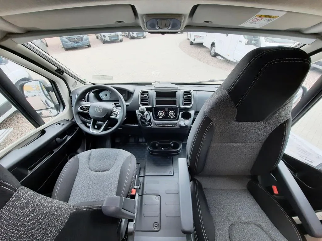 Allwetterreifen, elektrische Fensterheber, Klimaanlage Fahrerhause manuell, Fahrer- & Beifahrerairbag, Fahrerhaussitze drehbar, Getränkehalter, Fahrer-/Beifahrersitz in Wohnraumstoff, Dieseltank 90l, Rahmenfenster, 2-Flamm-Kocher- und Spülen-Kombination mit Elektrozündung, Bug mit geräumigen Staufach über dem Fahrerhaus, Geräumige Schubkasten mit Softclose und Pushlocks im Küchenblock, Kleiderschrank im Bettkasten links, Kompressorkühlschrank 84l inkl. 6,1l Frosterfach, Multifunktionsschiene an der Küchenrückwand, Schottwand inkl. Aufstiegstritt für Heckdoppelbett, Schwenkbad mit Holztüre, Schwenkwand und Kasettentoillette, Truma Combi 4 Heizung, Wassertank 100l, Abwassertank 90l, Flexible Lichtleiste, Aufbaubatterie 95Ah AGM, 10 Jahre Dichtigkeitsgarantie, Wohnwelt Saturn, Isofix für einen Sitzplatz, u. v. m.